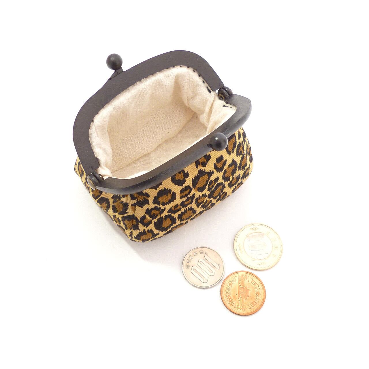 プラフレームがかわいいがま口小銭入れです。豹柄の可愛いがま口です。