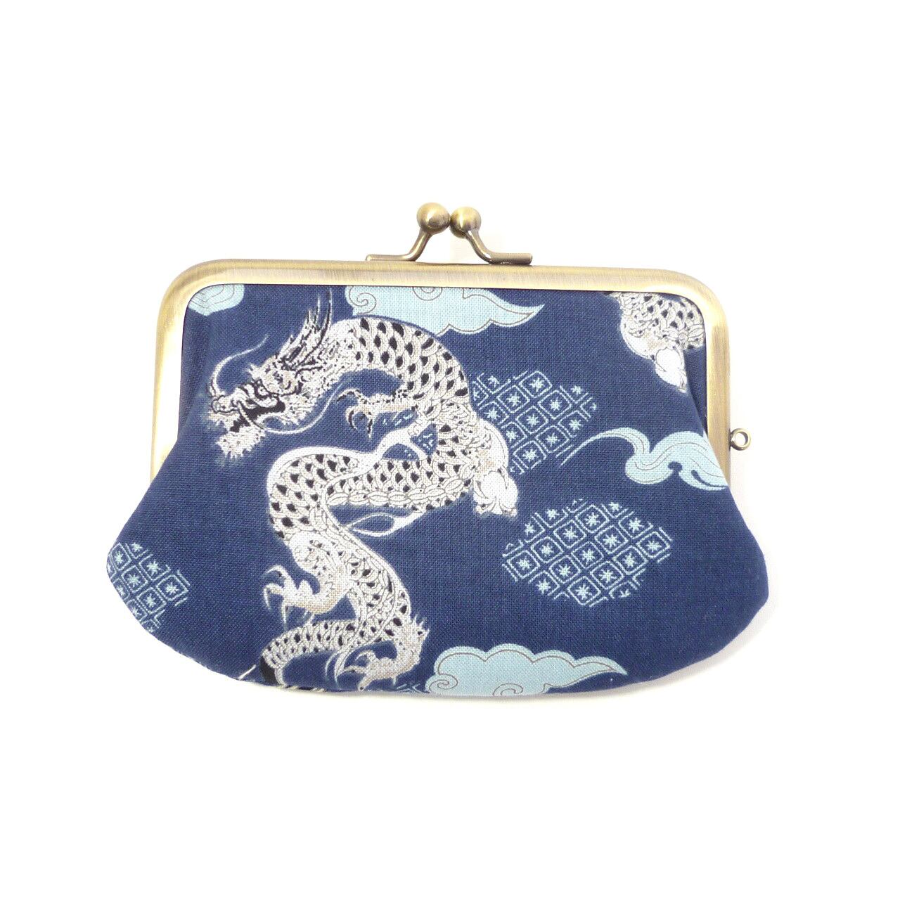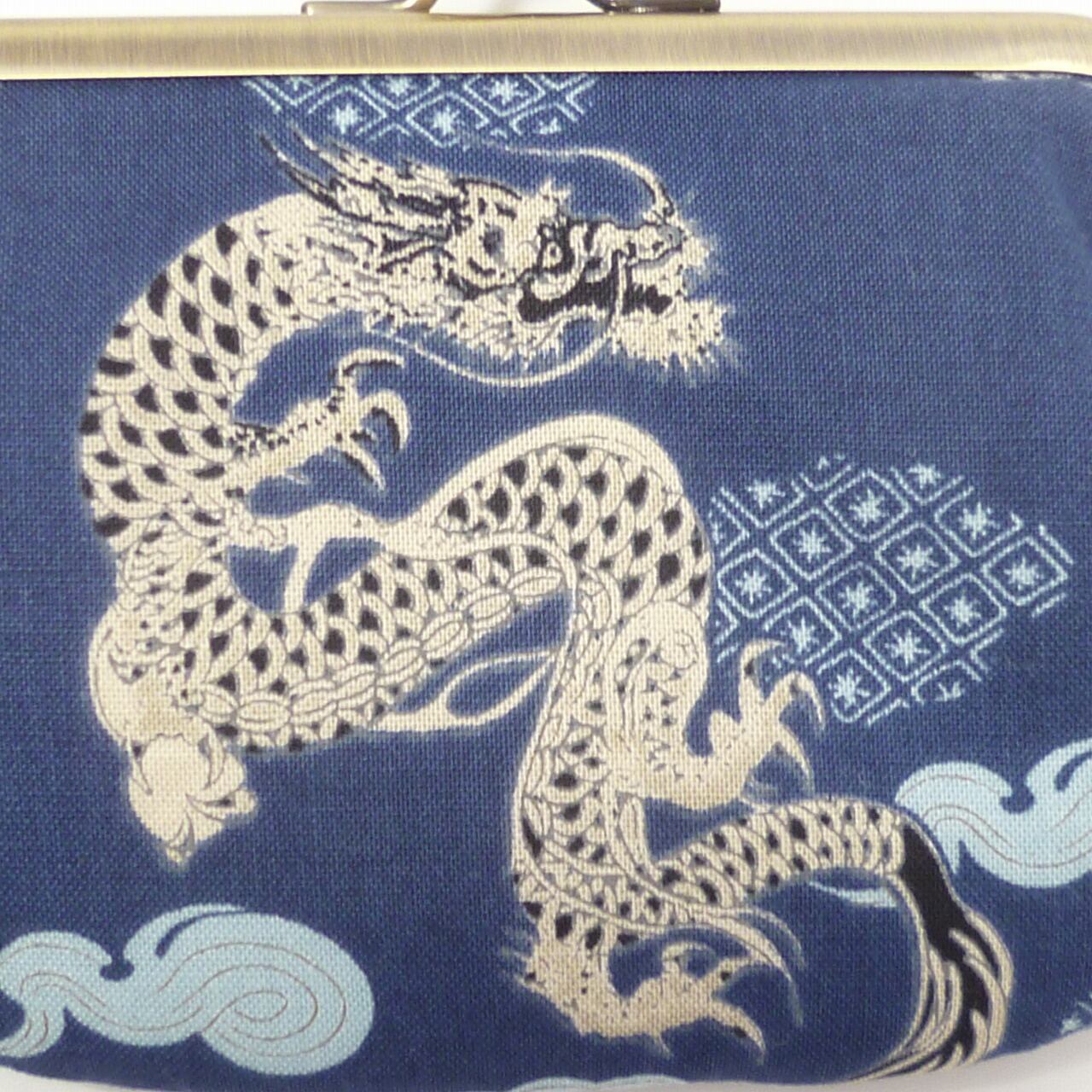 親子がま口財布 龍 ドラゴン柄 紺 お洒落 ミニ財布 G417