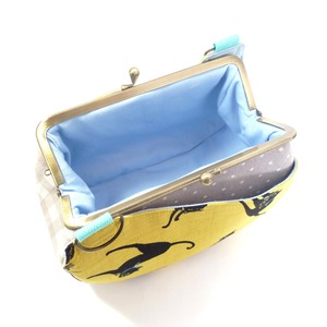 あおりがま口 ショルダーバッグ 黒猫柄 イエロー ポシェット G453