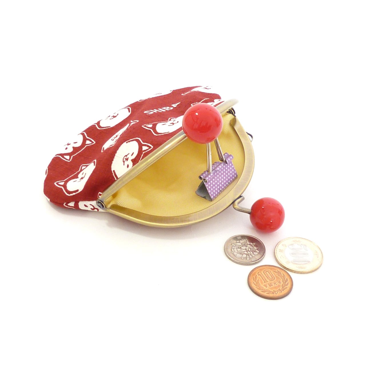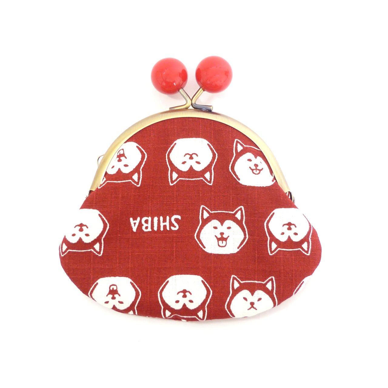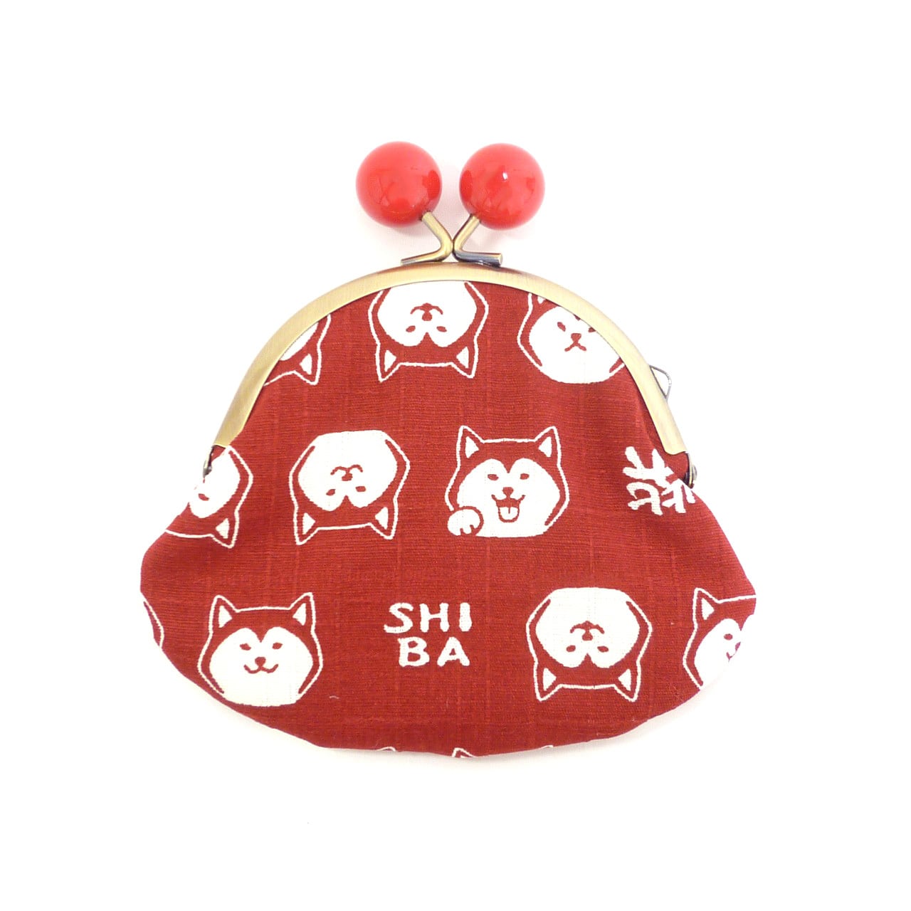 あめ玉 がま口小銭入れ 柴犬 しばわんこ 赤 コインケース 犬柄 G668