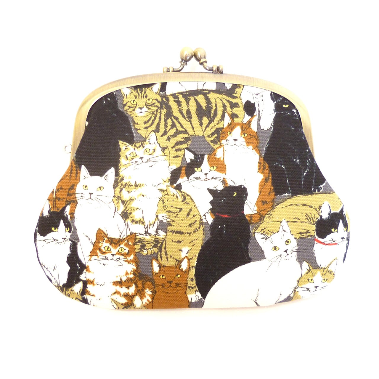 いろいろな模様の猫さんがたくさんの親子がま口財布です。