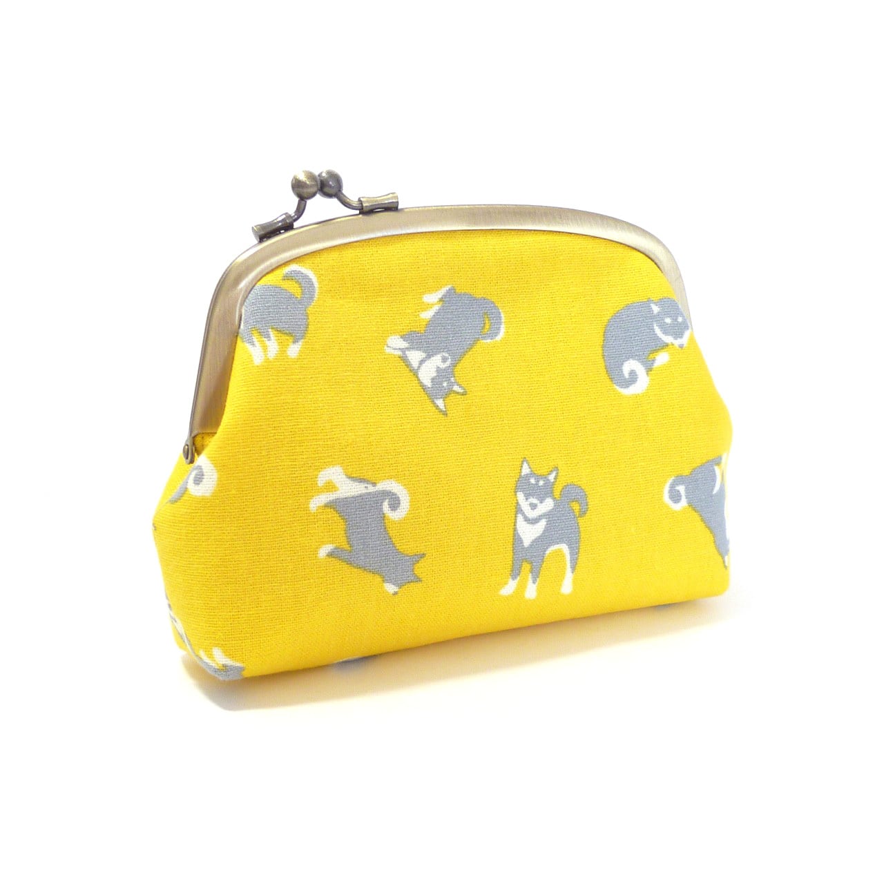 がま口ポーチ 柴犬 しばわんこ 黄色 犬柄 化粧ポーチ G580