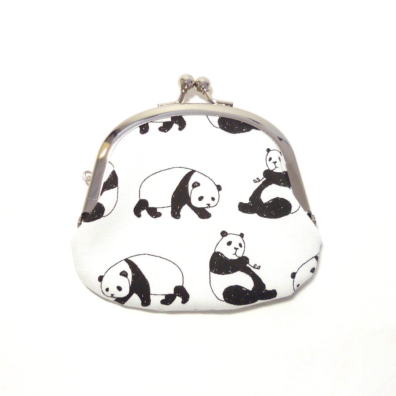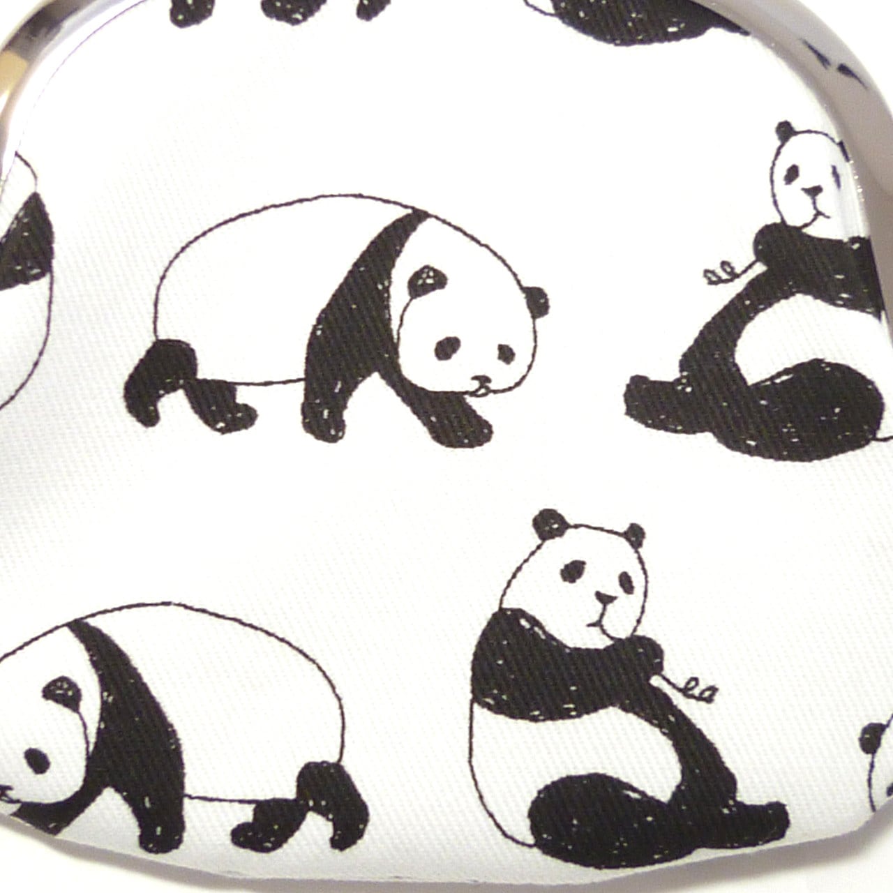 コロコロしたパンダが愛らしい柄のがま口小銭入れです。笹を食べているパンダもいます!