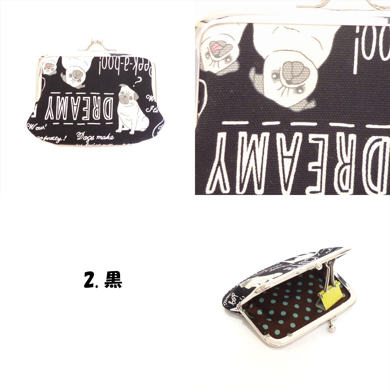 がま口 カードケース おちゃめなパグ柄 犬柄 かわいい柄 小銭入れ G631