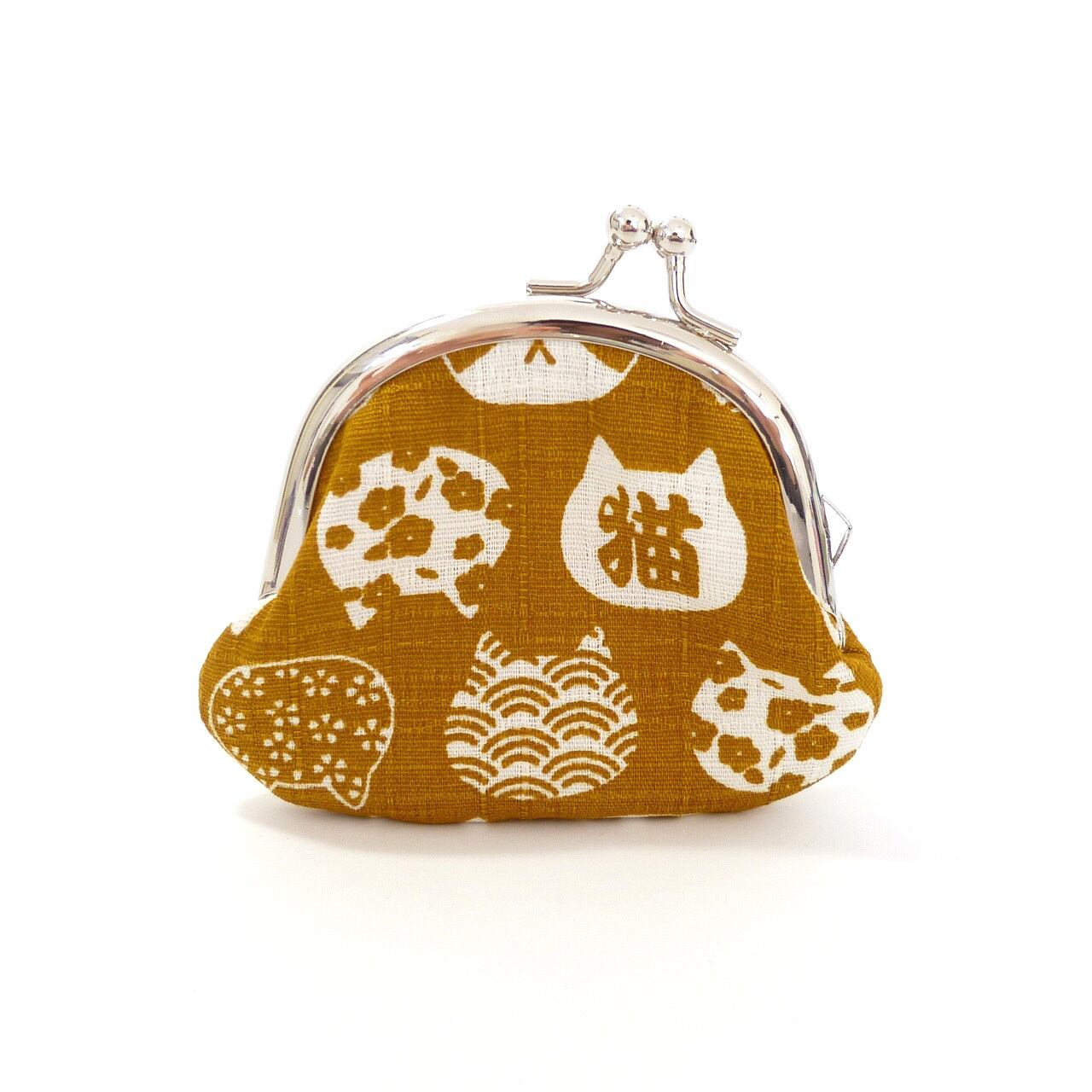 ミニ がま口小銭入れ 和風猫柄 黄土色 コインケース G485