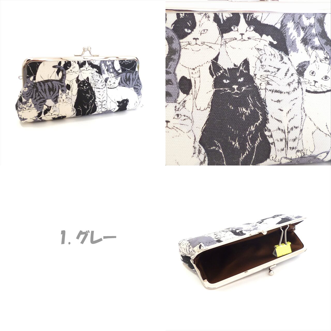 いろいろな模様の猫さんがたくさんのがま口ペンケースです。