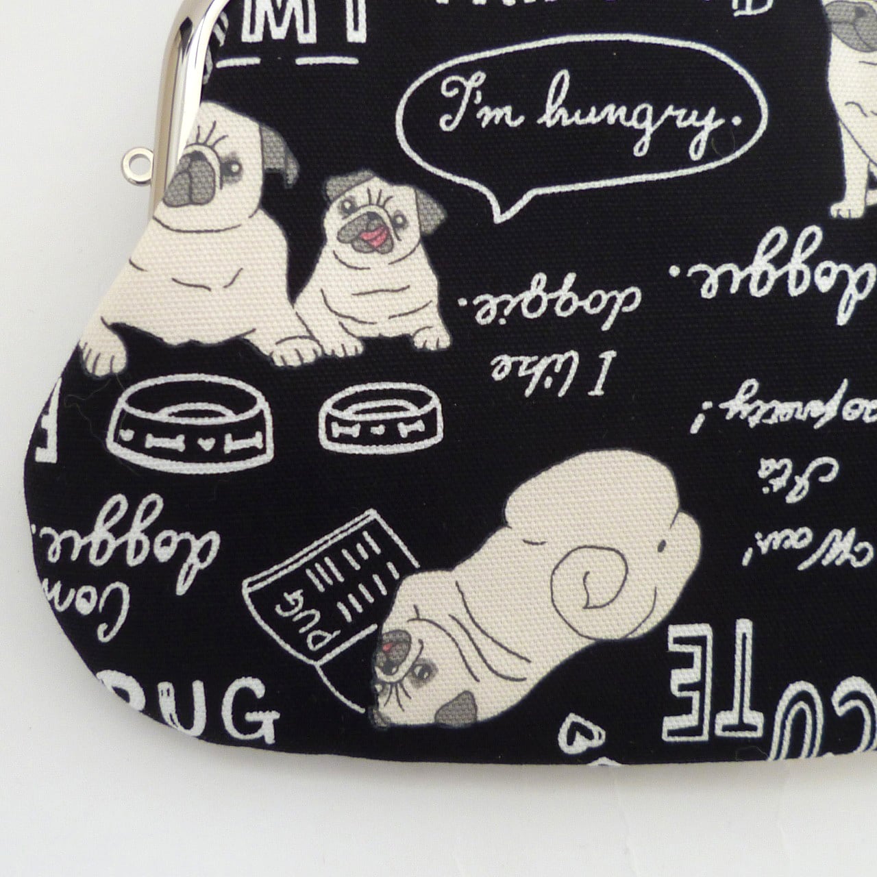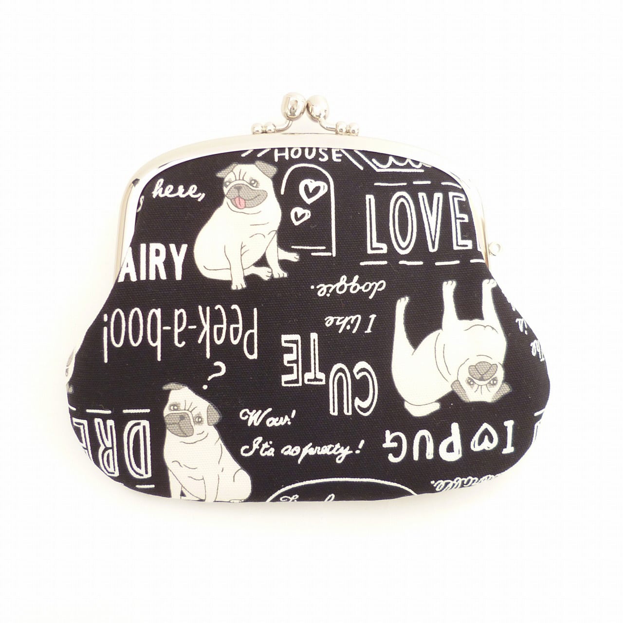 1/10追加★ 親子がま口 財布 おちゃめなパグ柄 犬柄 黒 G703 newitem