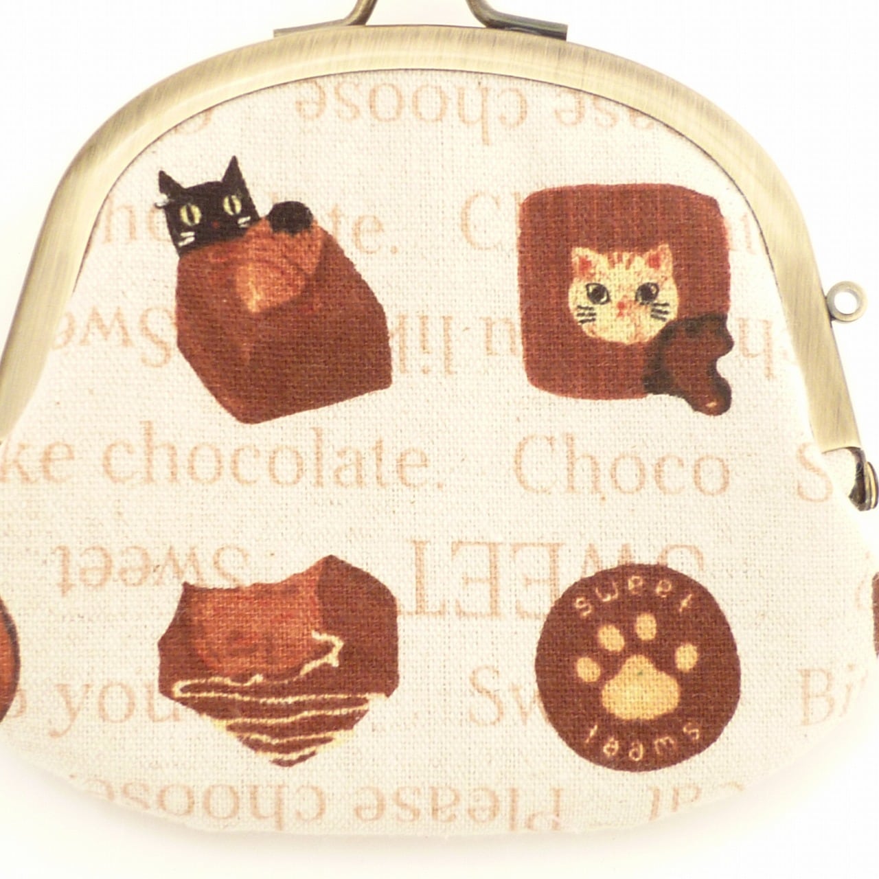 猫ちゃんがモチーフになったチョコレートの柄の可愛いがま口小銭入れです。
