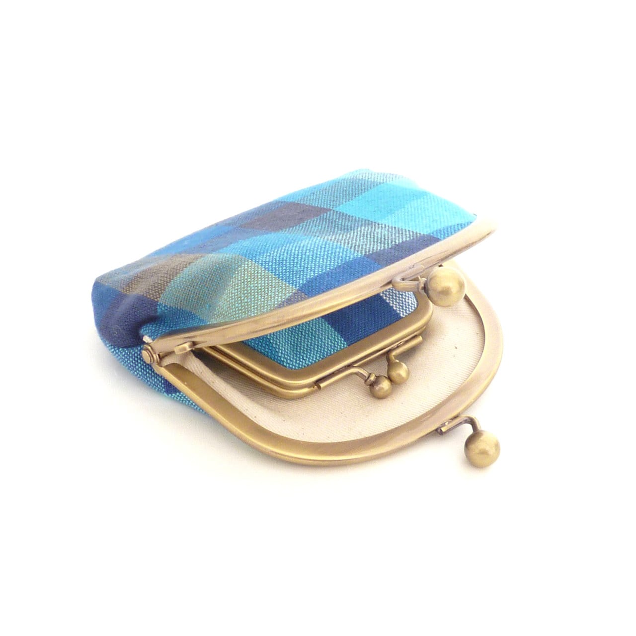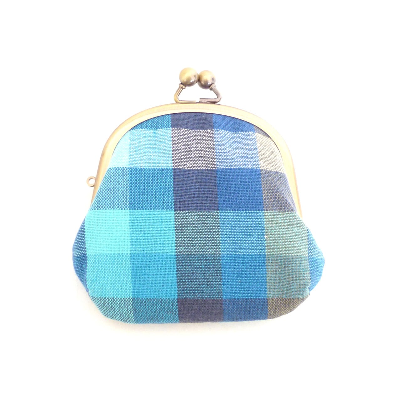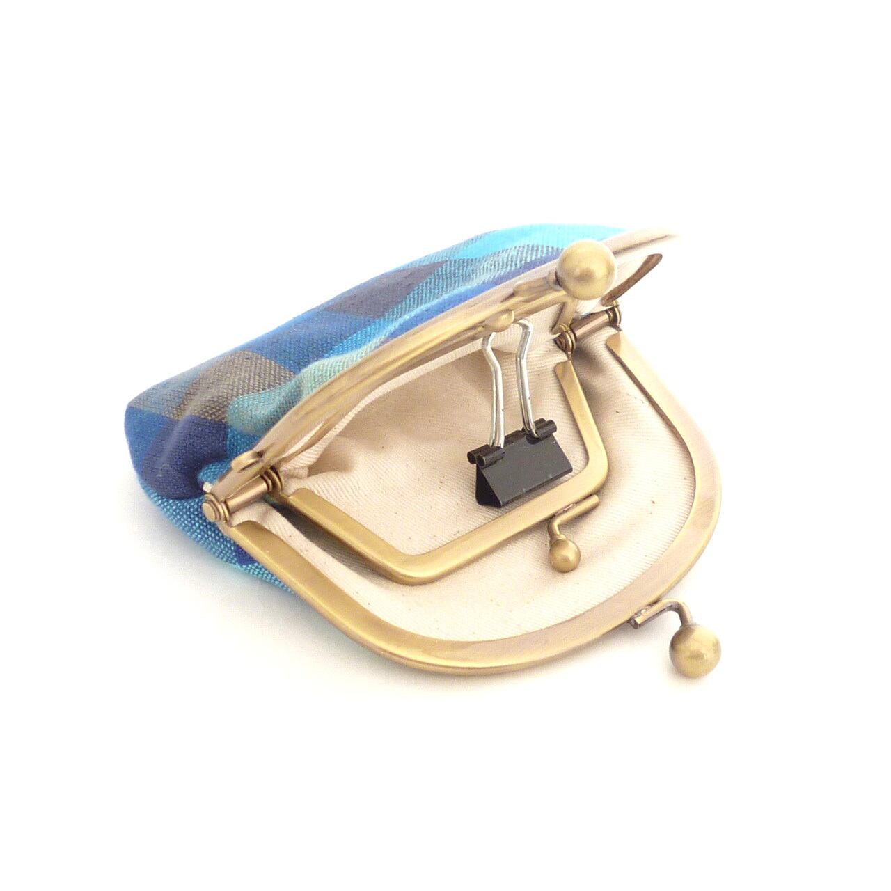 1/20追加★ 小さいサイズ 親子がま口 財布 チェック柄 青 ブルー G711 newitem
