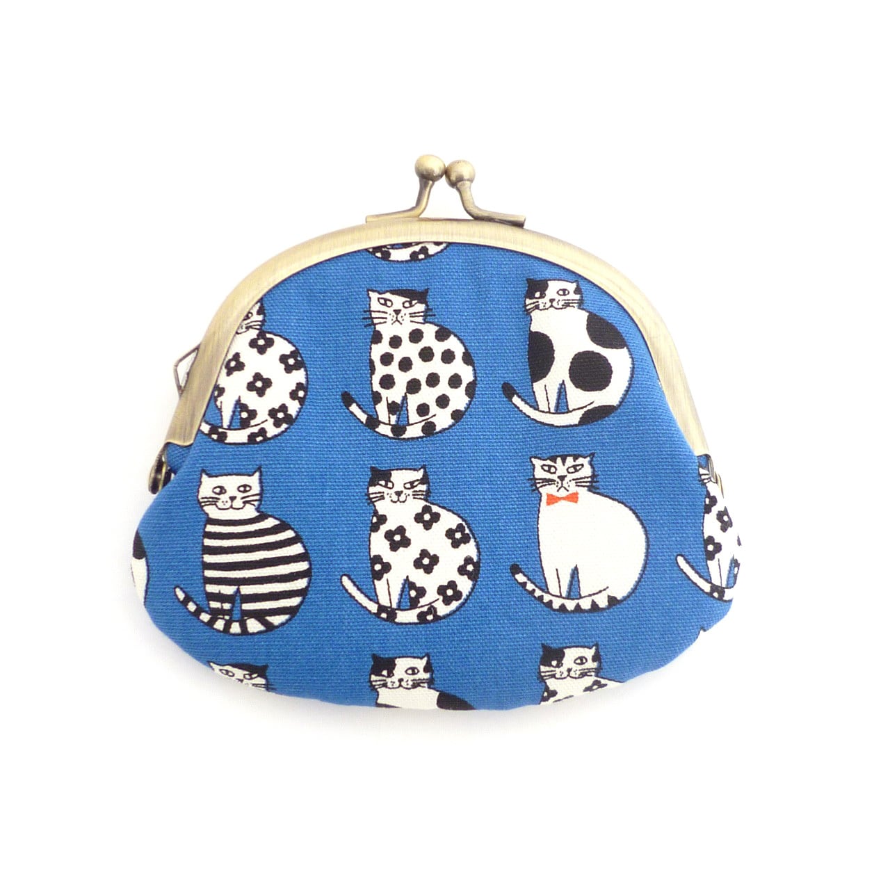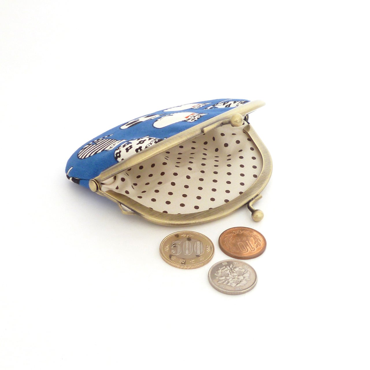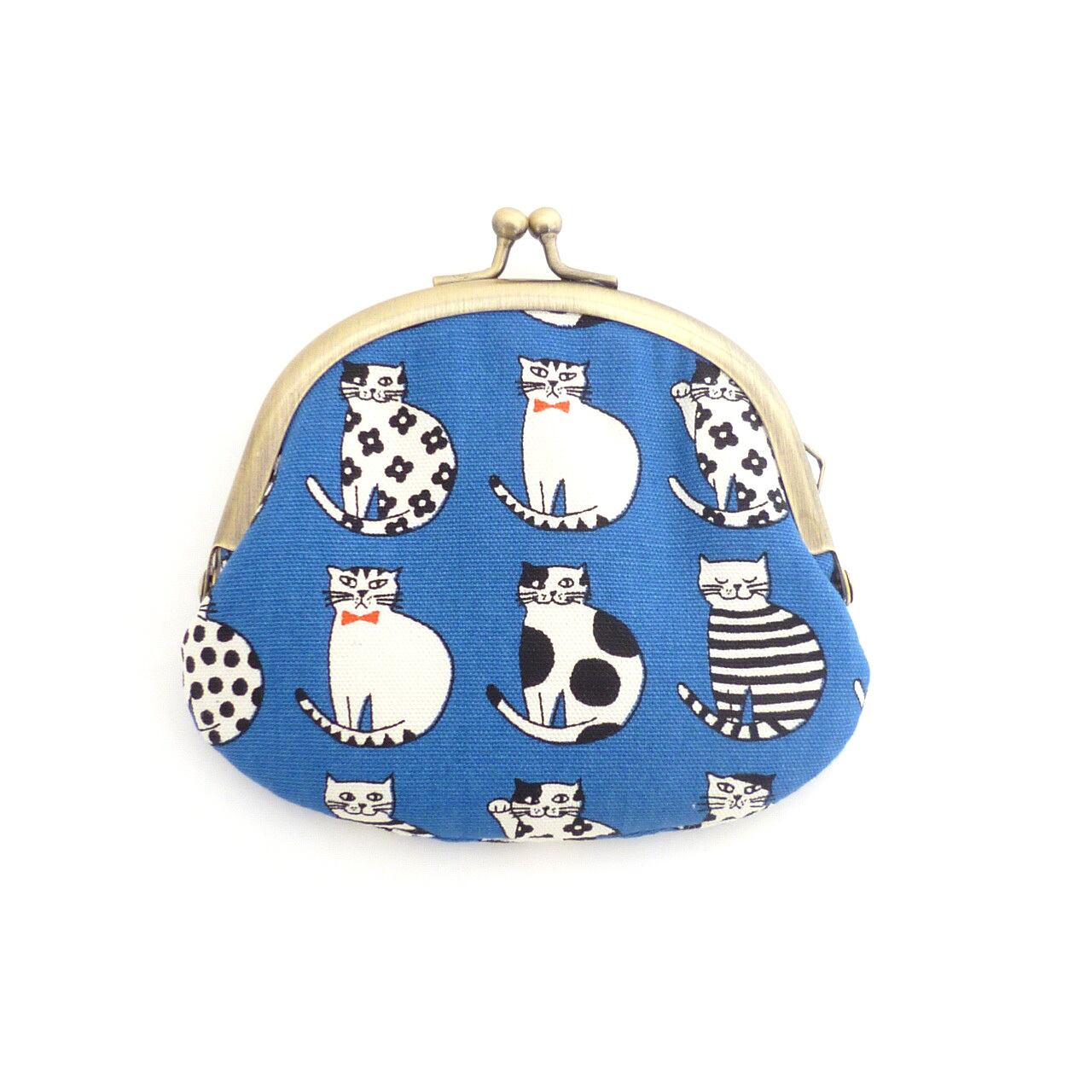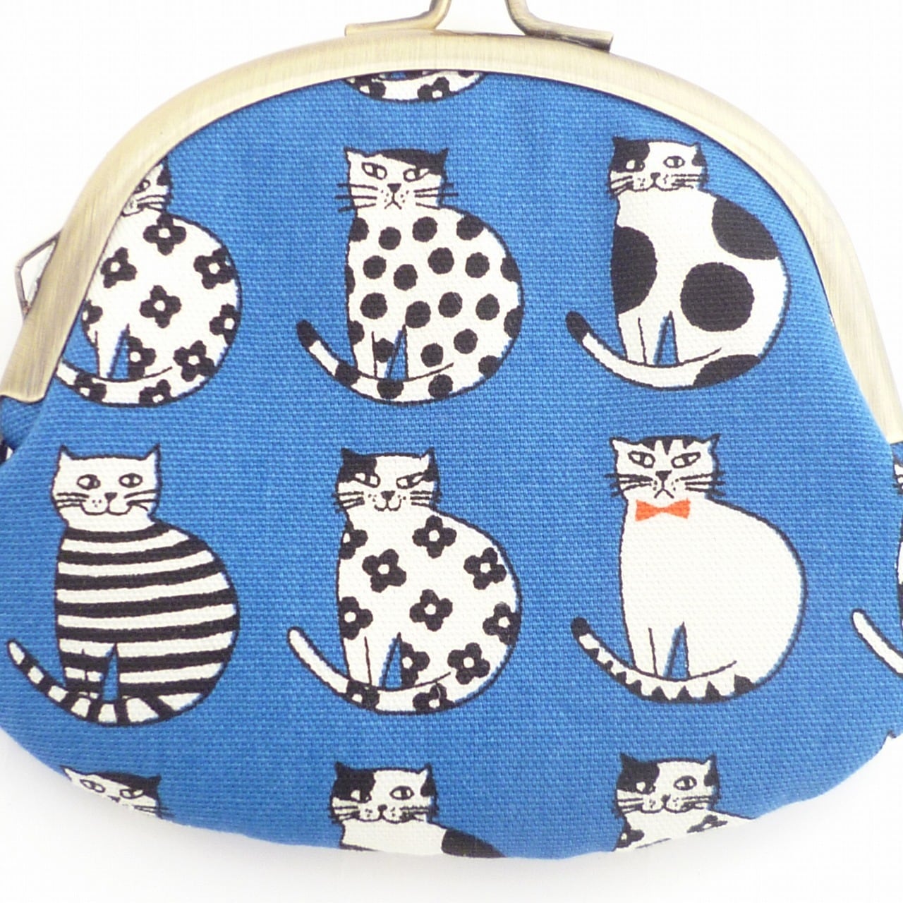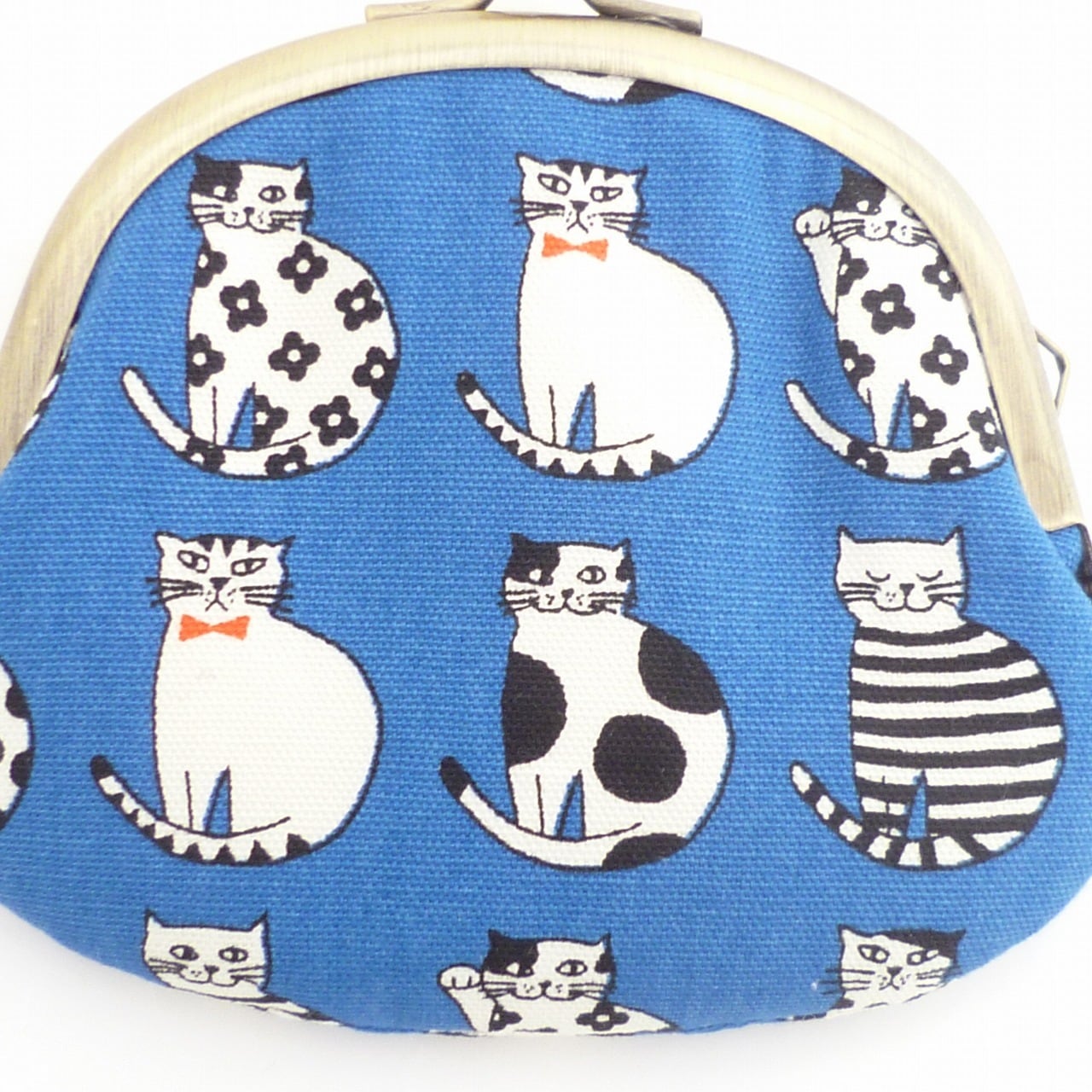 2/16追加★ がま口小銭入れ おすまし猫さん ネコ柄 青 コインケース G724 newitem