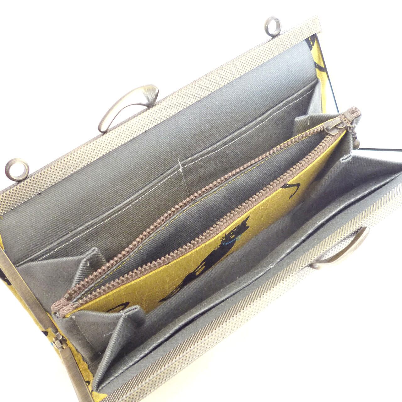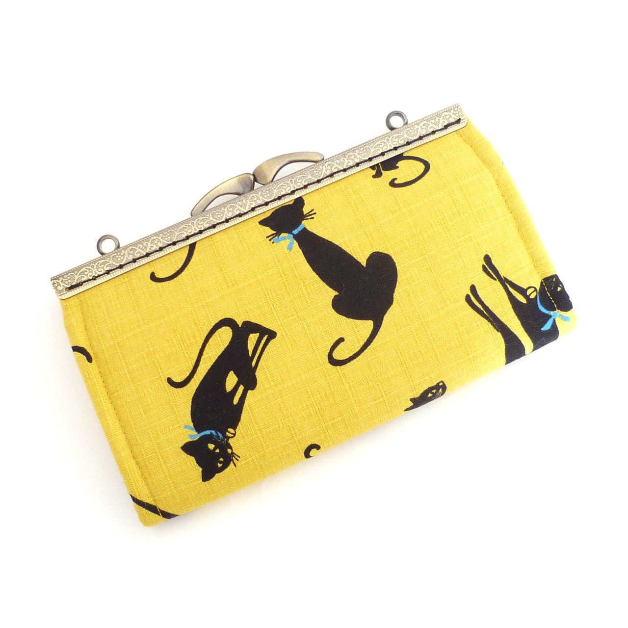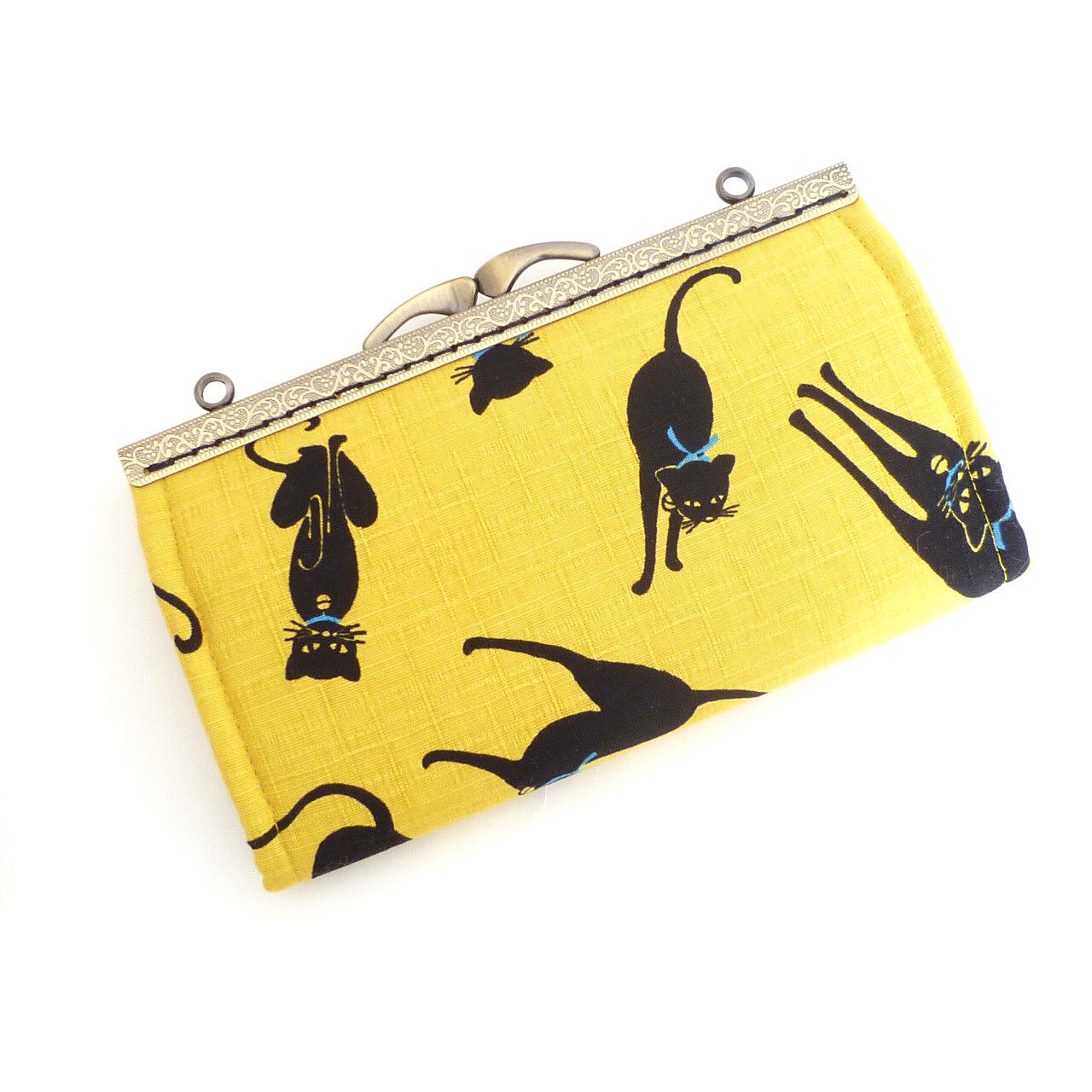 2/16追加★ がま口長財布 黒猫さん 和柄 黄色 猫柄 G727