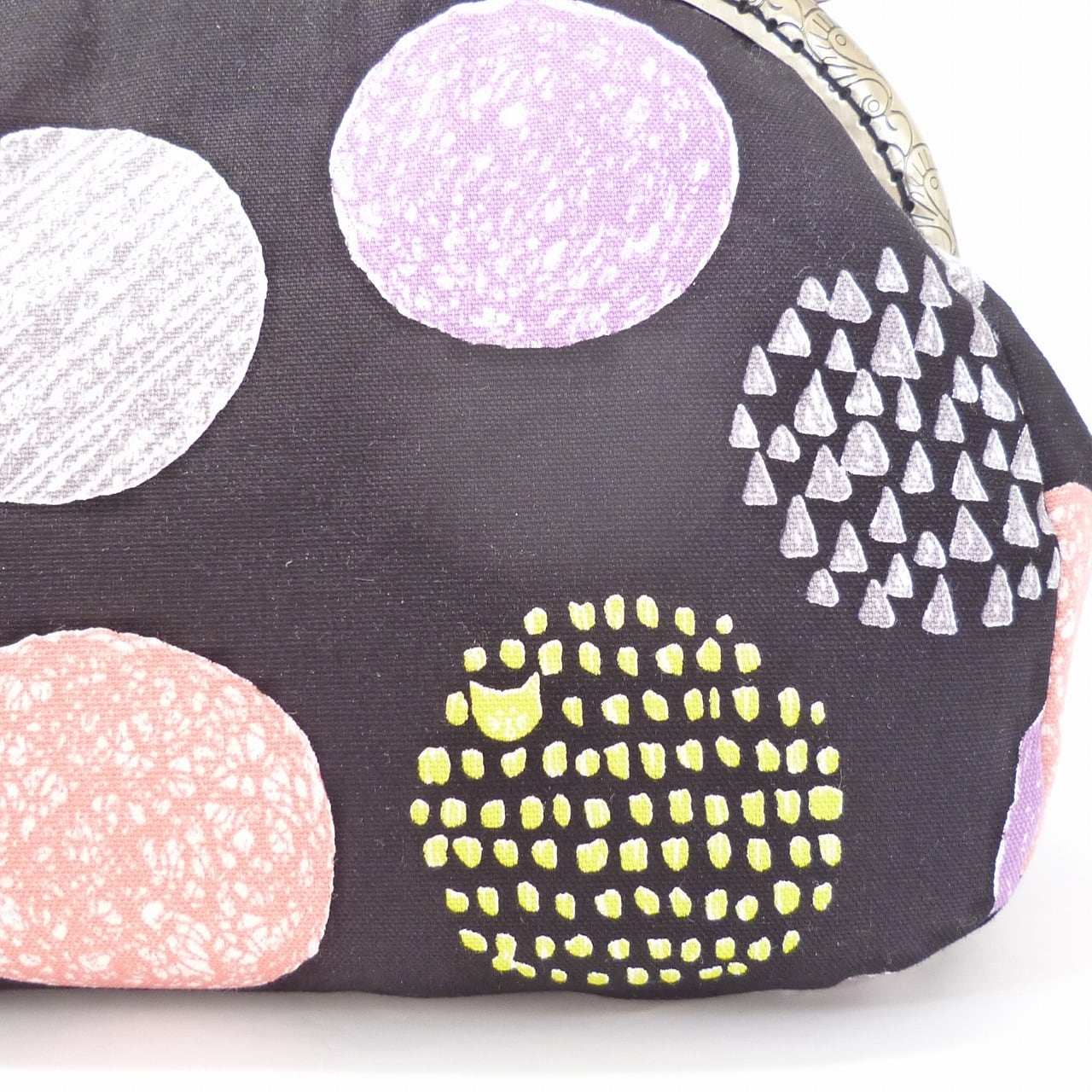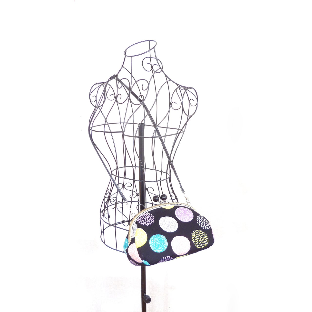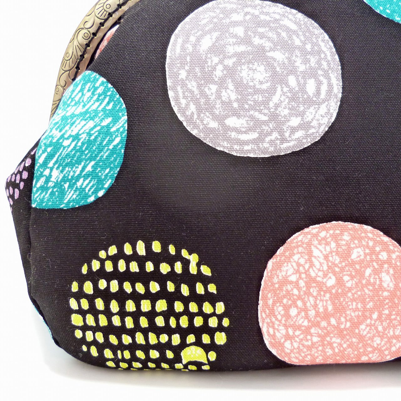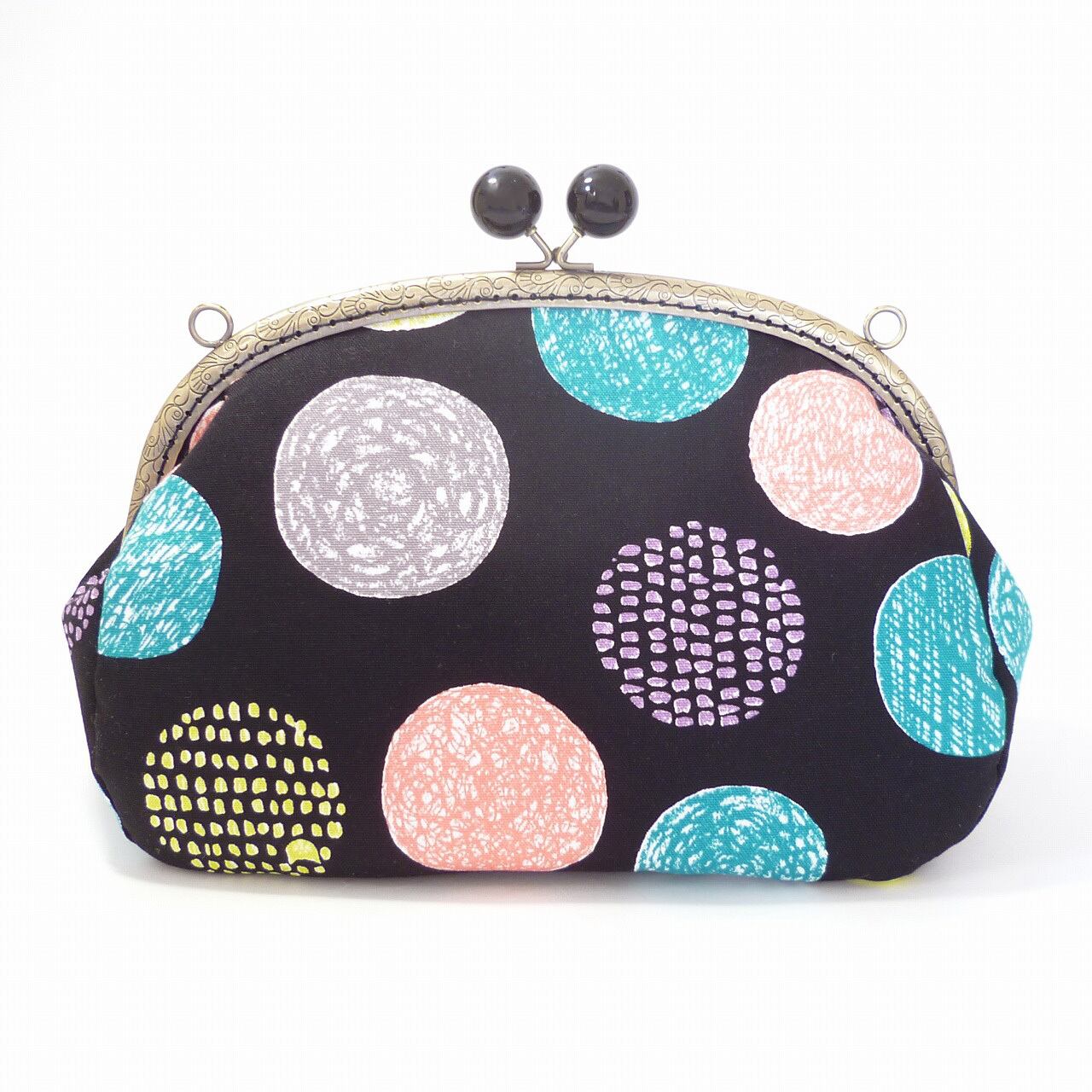 カラフルで大きめのドット柄のがま口ショルダーバッグです。