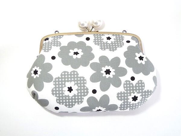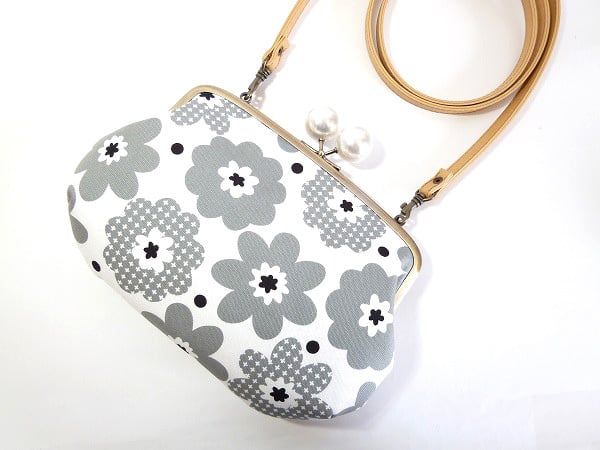 親子がま口ショルダーバッグ 花柄 グレー ポシェット G100