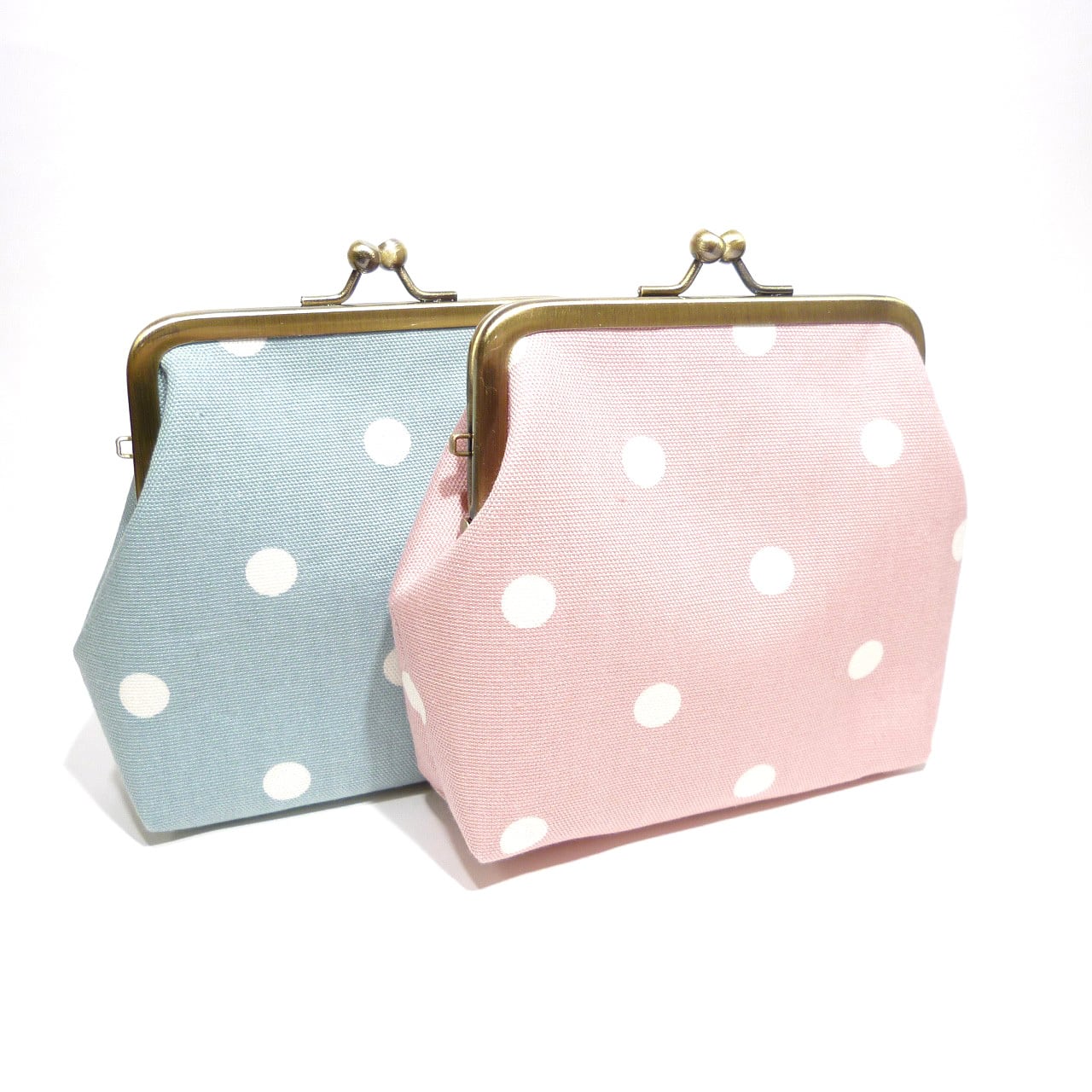 シンプルで淡い色合いの、ドット柄のがま口ポーチです。