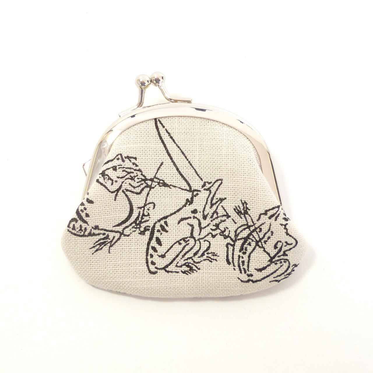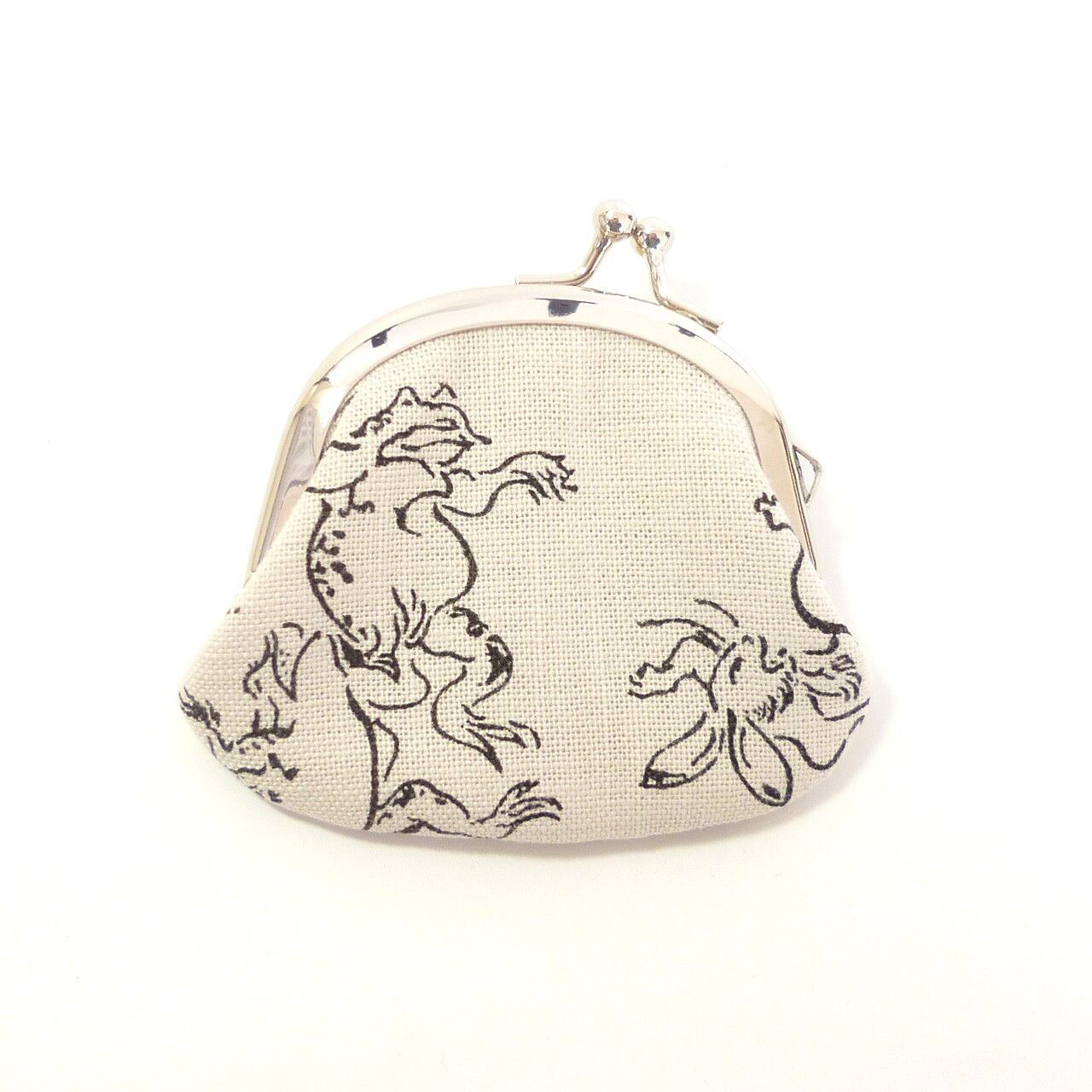 ミニ がま口小銭入れ 鳥獣戯画 生成り×黒 コインケース G924