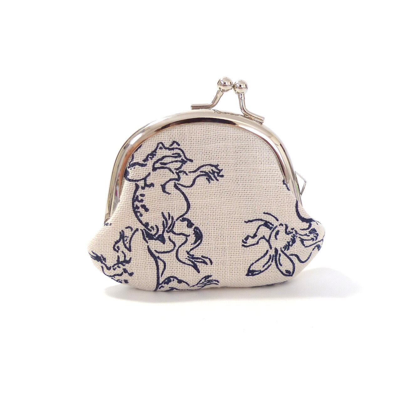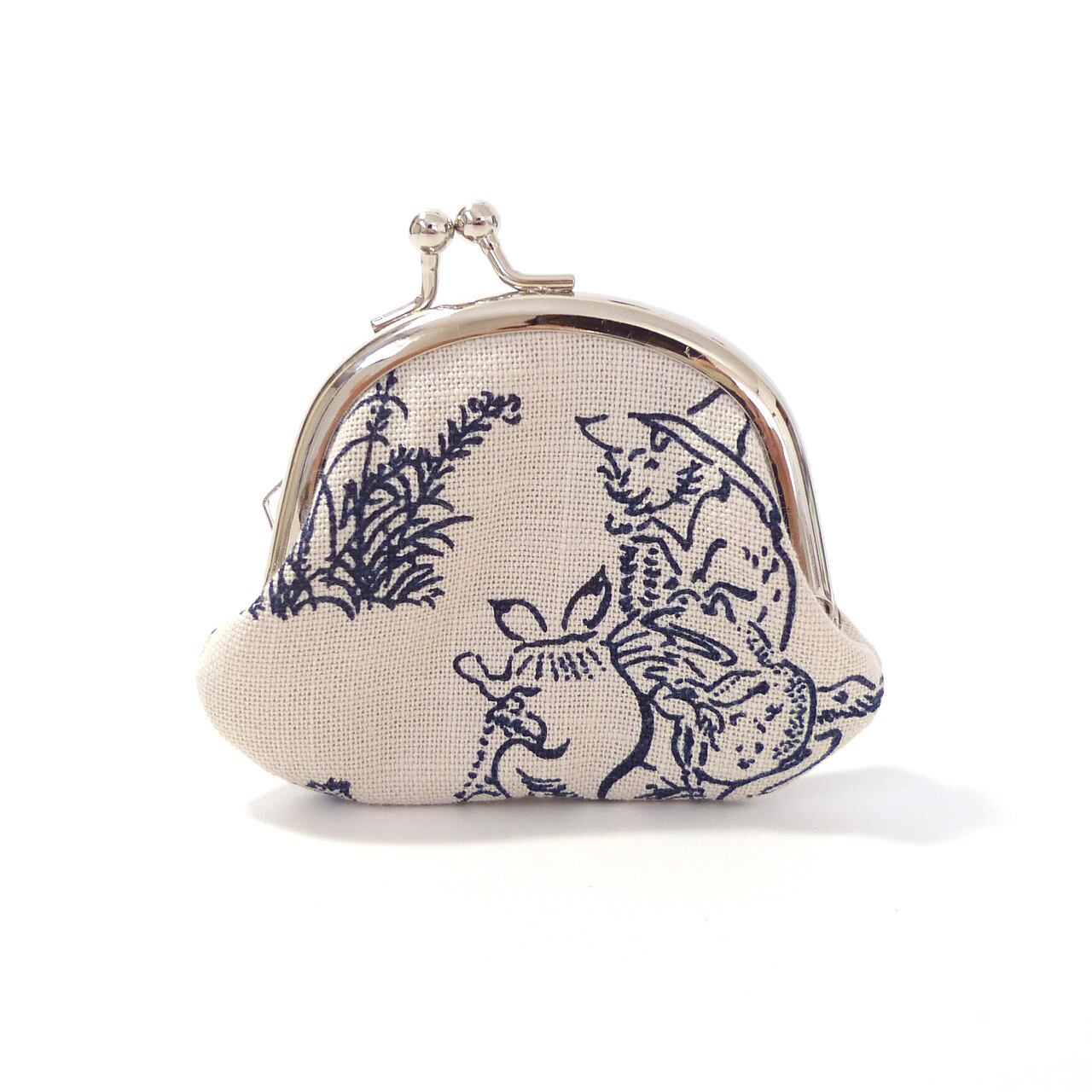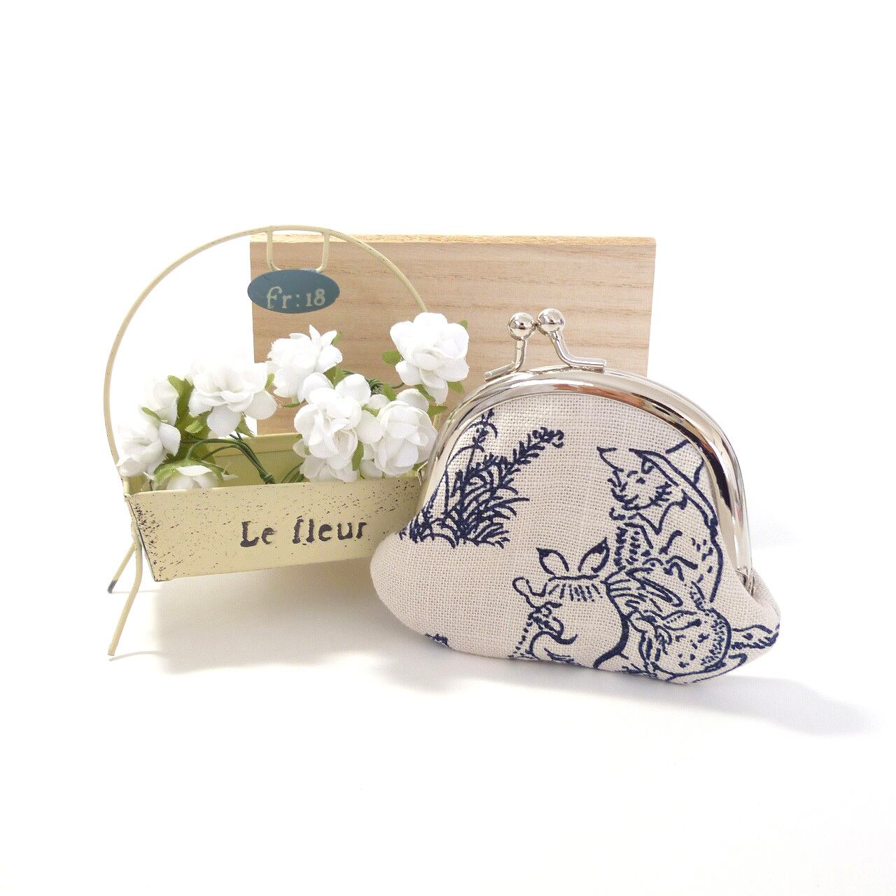 ミニ がま口小銭入れ 鳥獣戯画 生成り×紺 コインケース G388