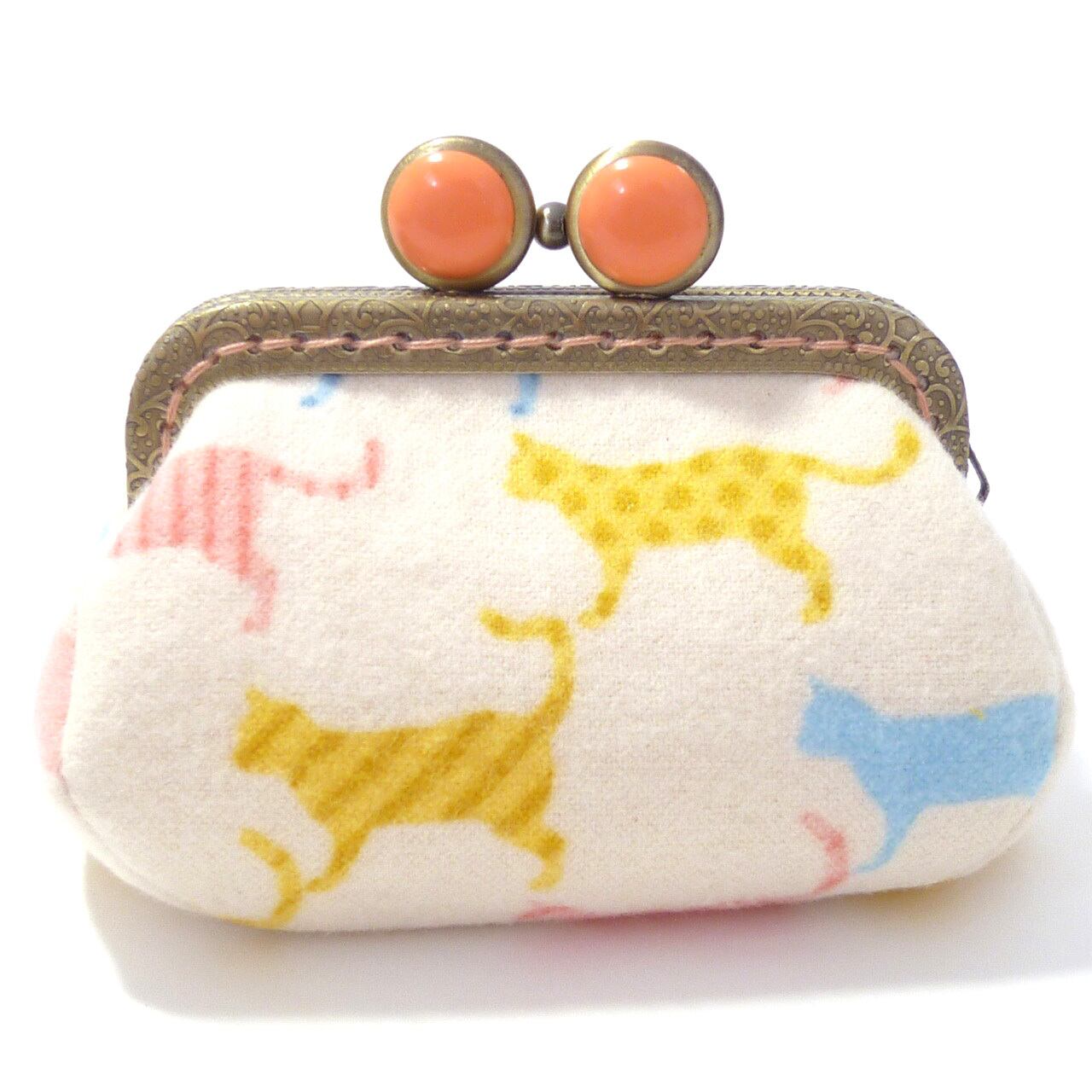がま口 小銭入れ カラフルな猫柄 起毛生地 コインケース 財布 G732