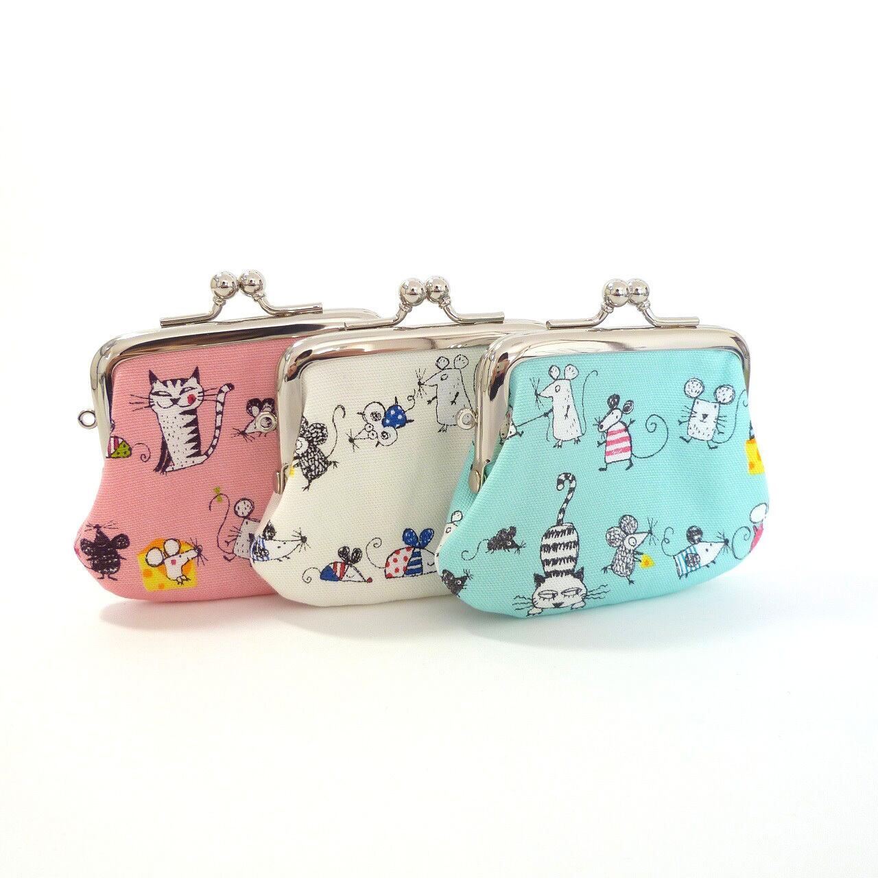 がま口 小銭入れ 猫とネズミ コインケース 猫柄 財布 G116