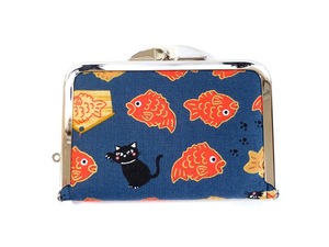 がま口 カードケース 鯛とたい焼きと猫柄 紺 G376