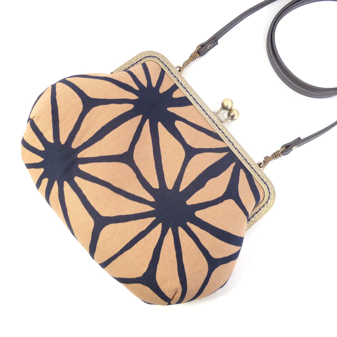がま口 ショルダーバッグ ほうじ茶色 和柄 麻の葉柄 G516