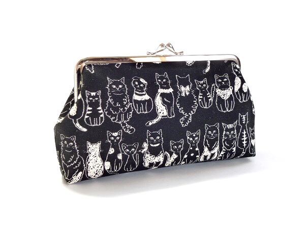 がま口 ポーチ 猫柄 ブラック 化粧ポーチ G638