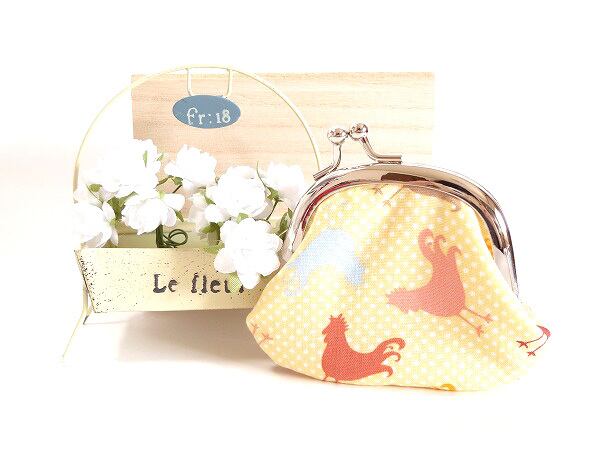 ミニ がま口小銭入れ ニワトリ柄 イエロー コインケース G265