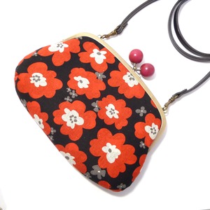 大きい花柄が目を引く、お洒落な親子がま口のショルダーバッグです。口金のあめ玉も赤に合わせていて可愛いです。