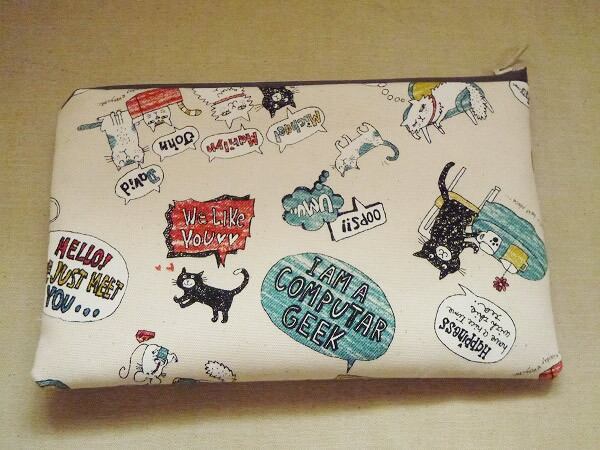 フラットポーチ アメリカンな猫たち柄 ホワイト
