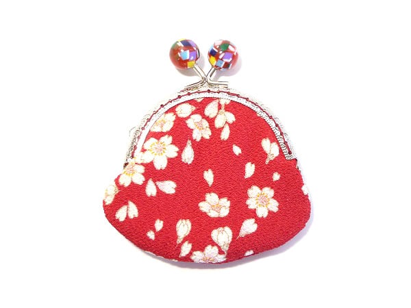 ちりめん生地のがま口小銭入れ 桜 サクラ 赤 あめ玉 G602