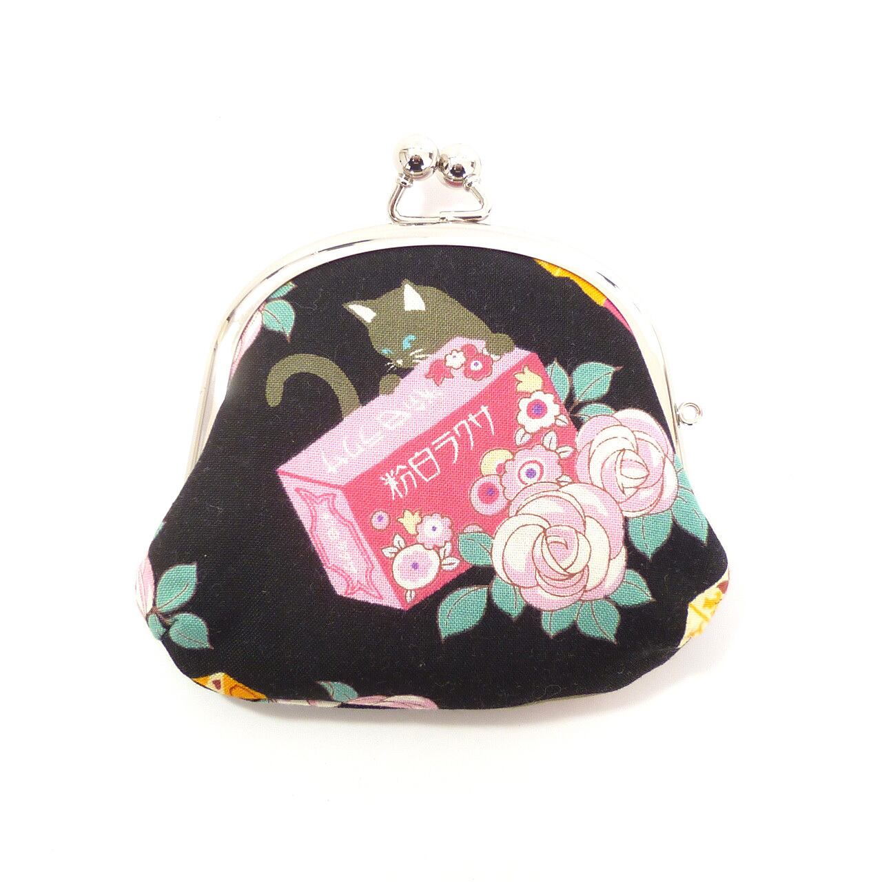 小さいサイズ 親子がま口 財布 コスメと猫 ブラック 猫柄 G506