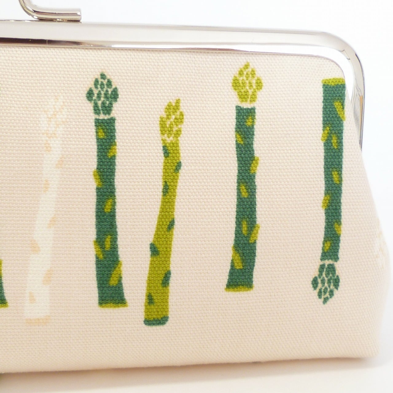 美味しそうなアスパラガスの柄のがま口ペンケースです。