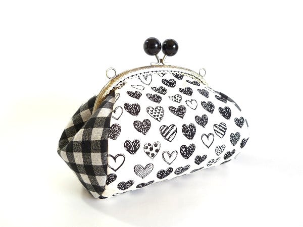 あめ玉 がま口 ミニバッグ ハート柄 黒・ブラック お洒落 G746