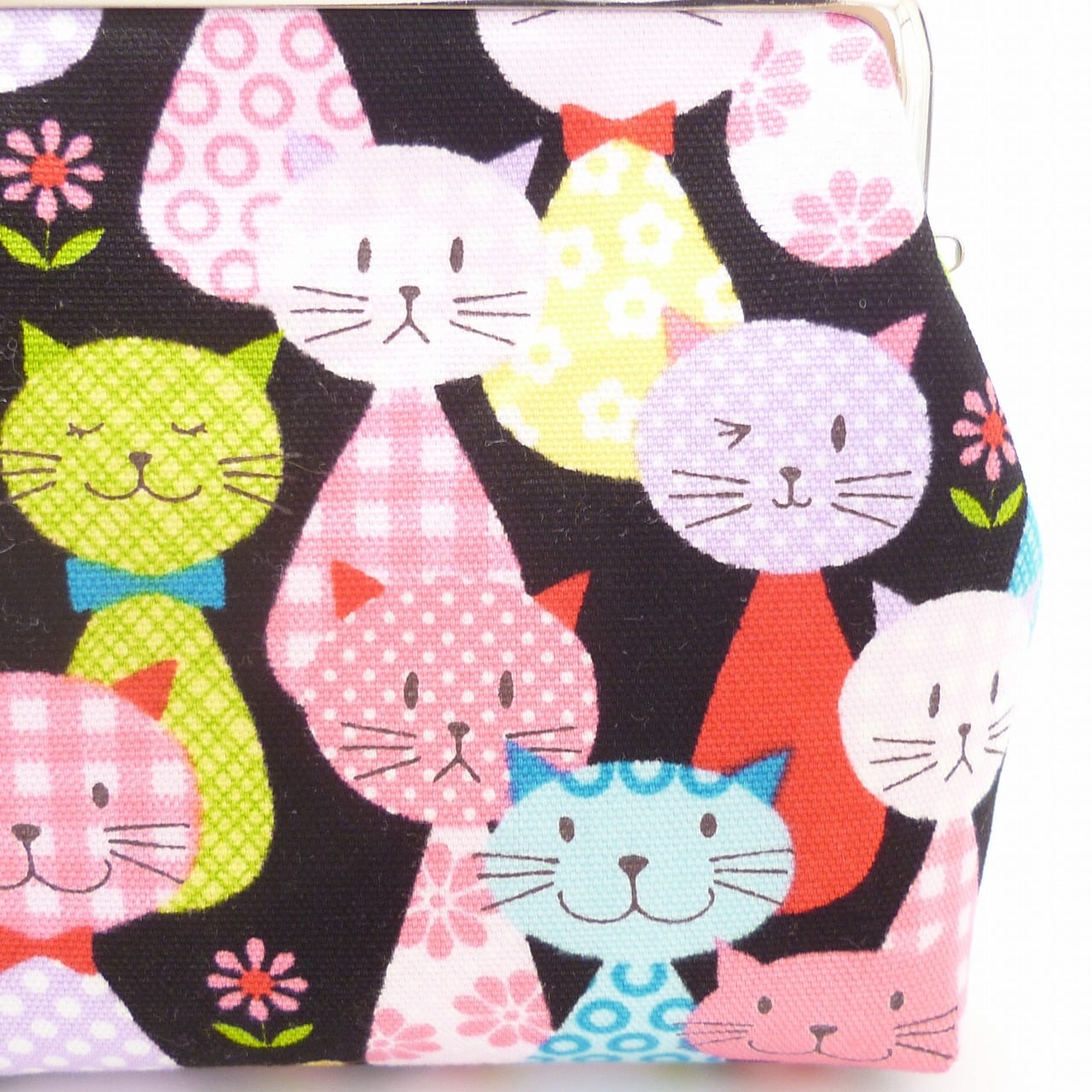 猫好きさんにおすすめ♪カラフルで可愛い猫たちのがま口ポーチです♪