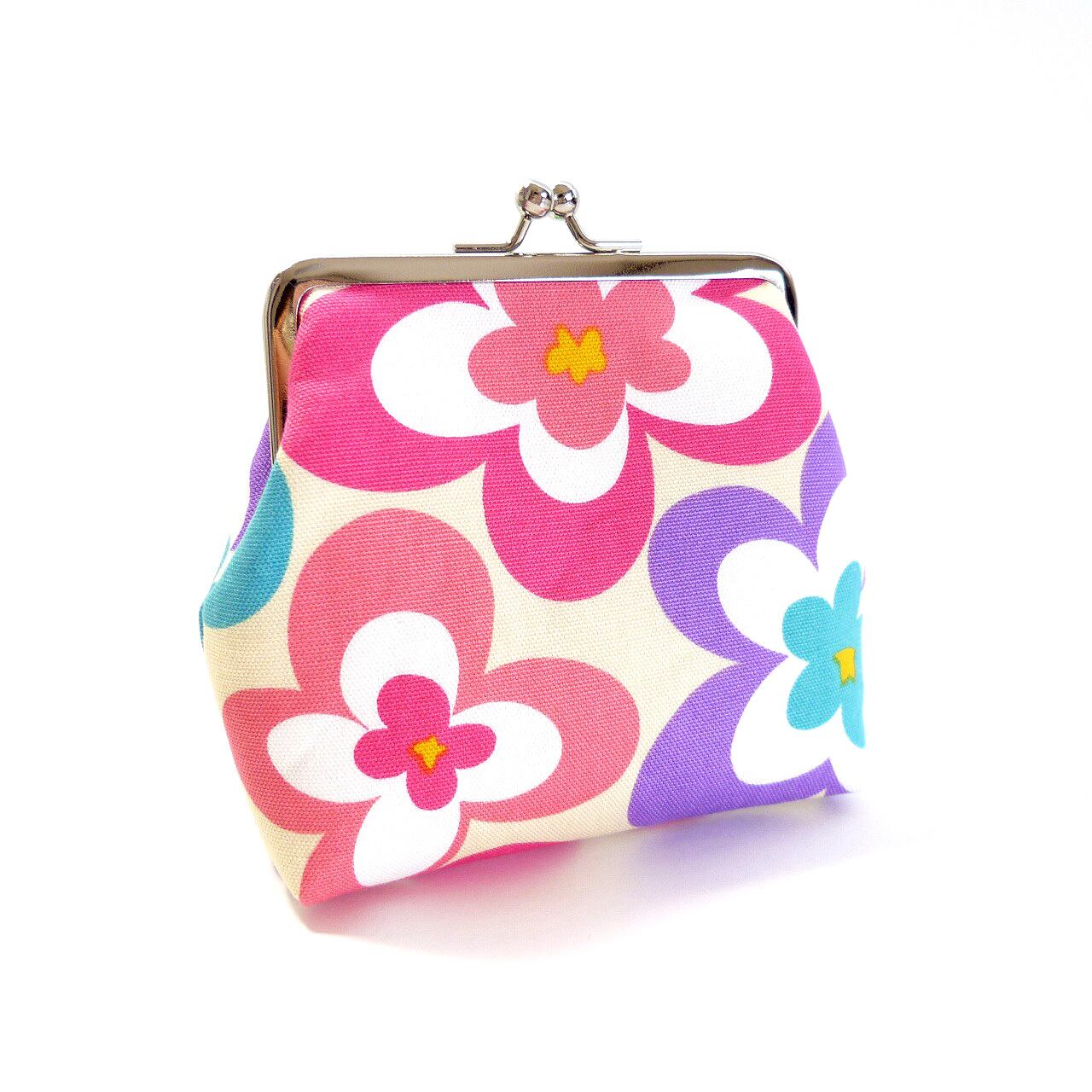 気持ちも明るくなるようなカラフルな花柄のがま口ポーチです♪
