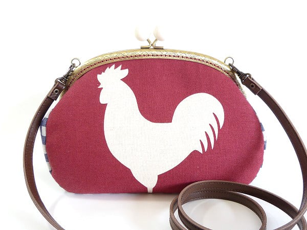 にわとりが一羽大きく描かれた注目度たっぷりのがま口バッグです!