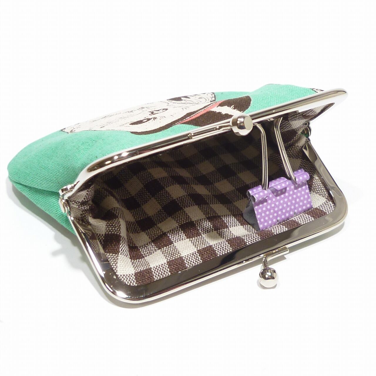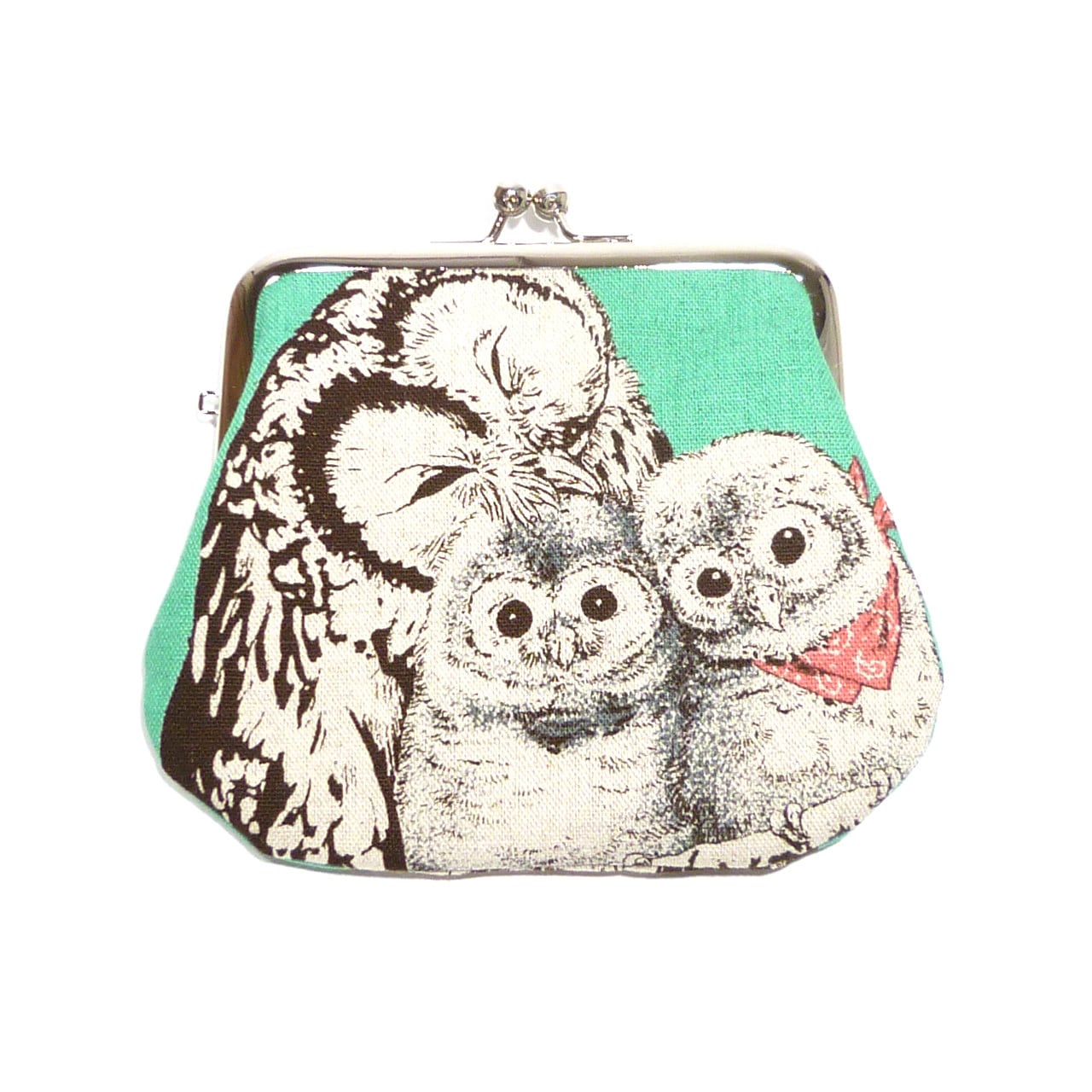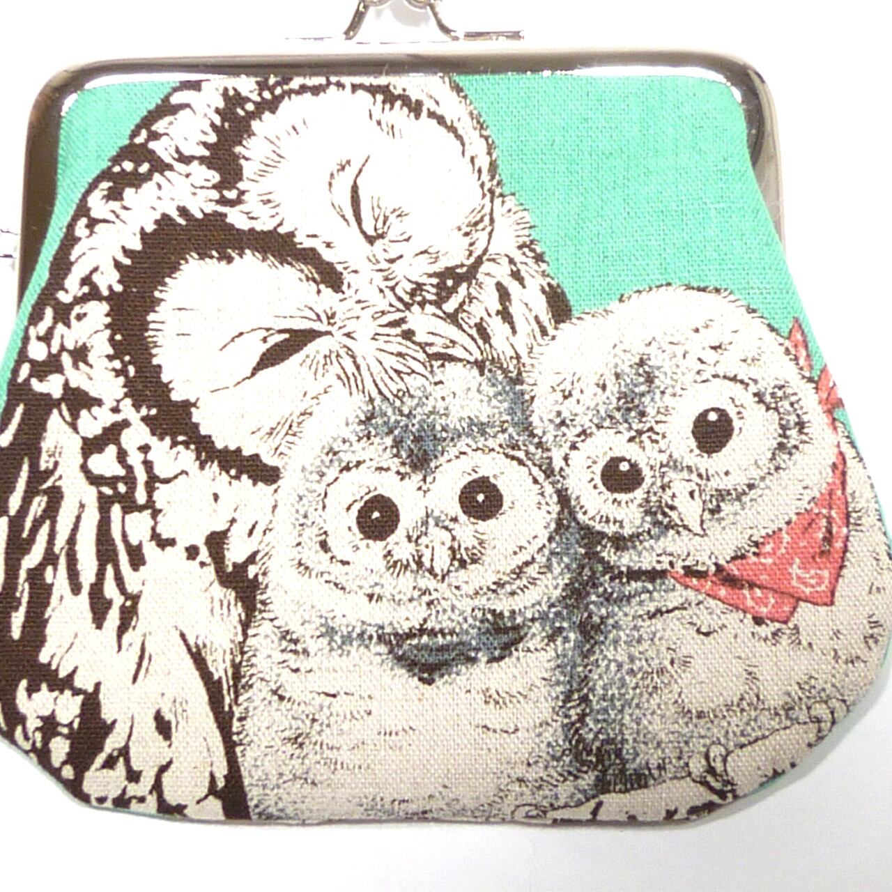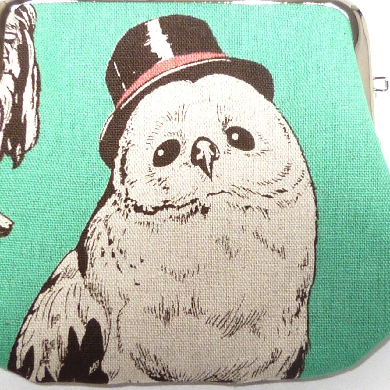 3/15追加★ がま口 ポーチ ふくろう柄 梟 動物 グリーン G743