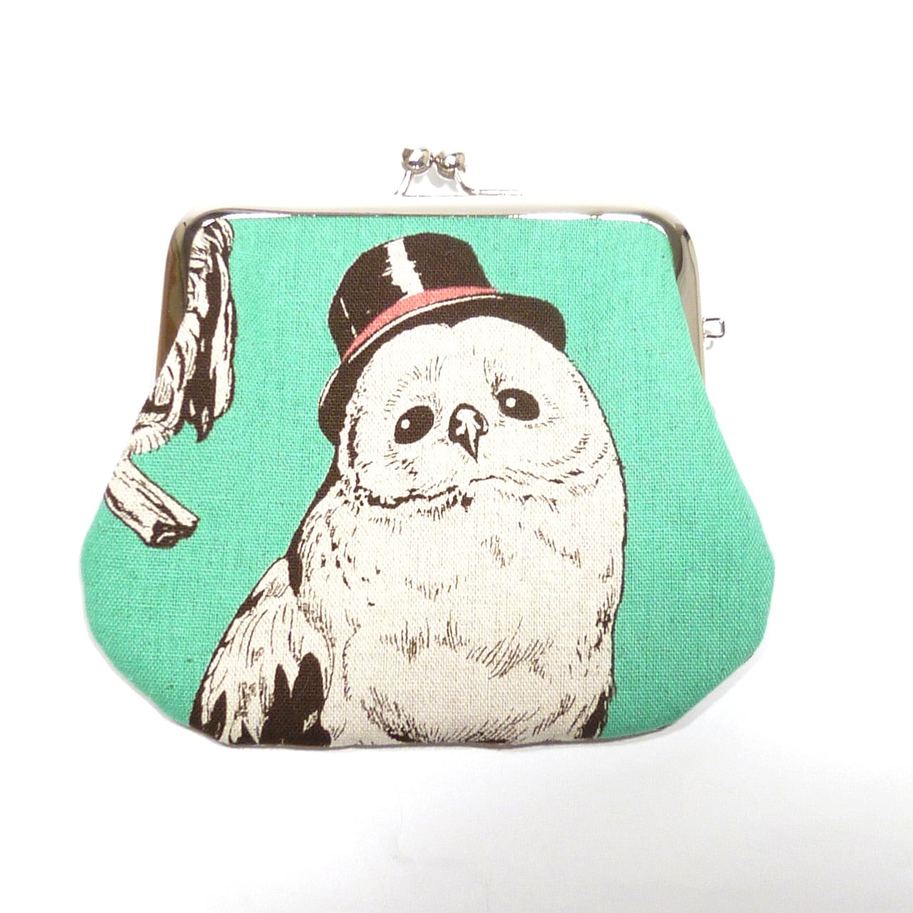 シルクハットをかぶったり♪バンダナ巻いたり♪お洒落で可愛いふくろうさんのがま口ポーチです。
