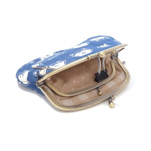 外ポケット付き 親子がま口 財布 柴犬柄 柴わんこ 青・ブルー G586