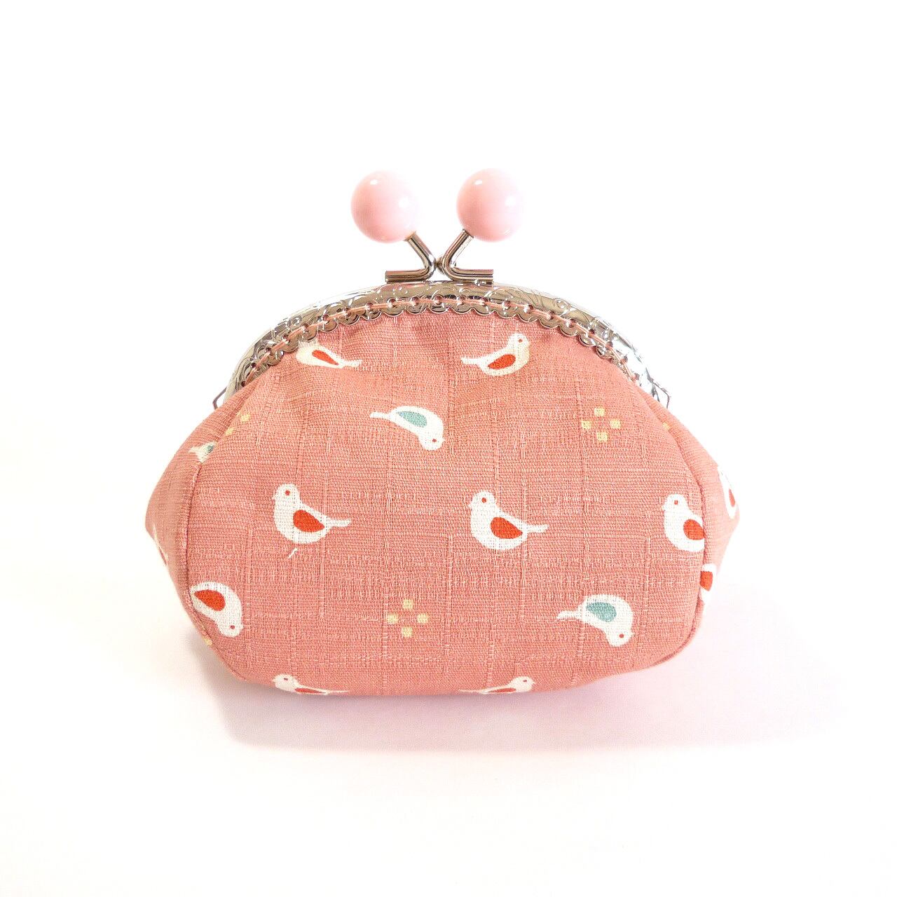 あめ玉 がま口小物入れ ピンク 和柄 小鳥 G896