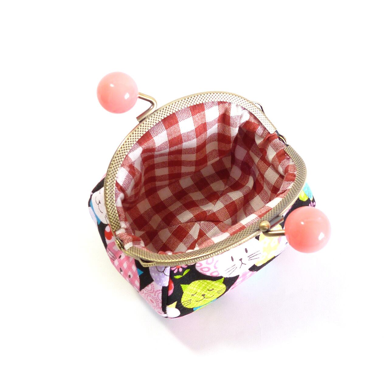 丸くてかわいいフォルムのあめ玉のがま口小物入れ。丸いフォルムの猫たちがたくさんの柄です!