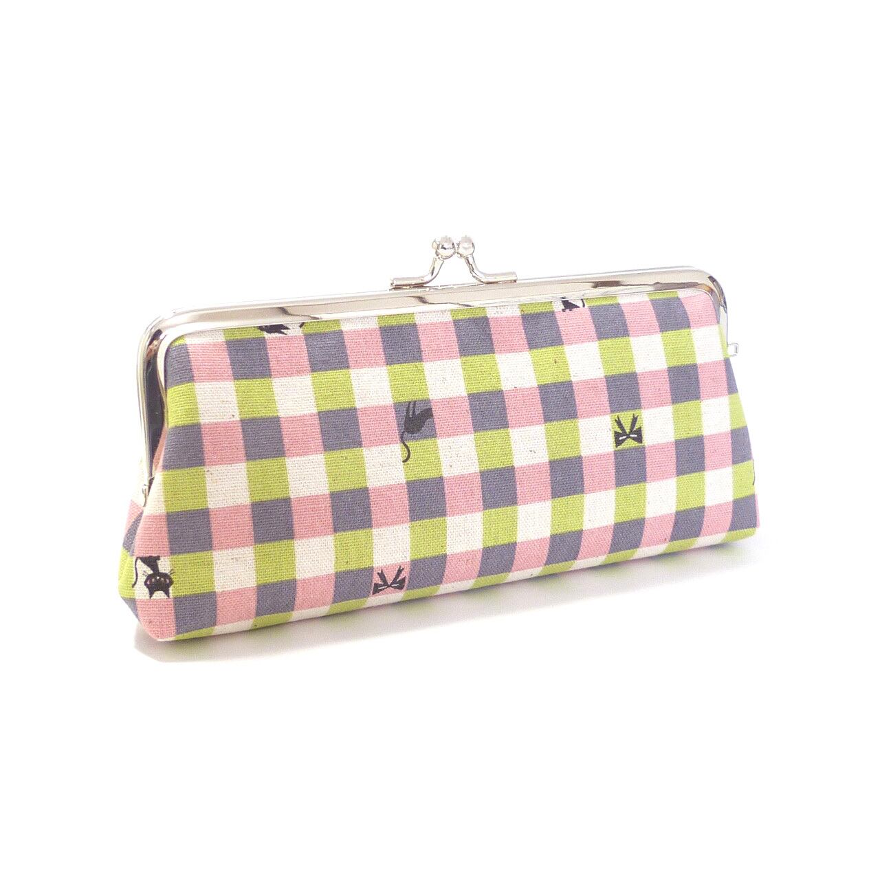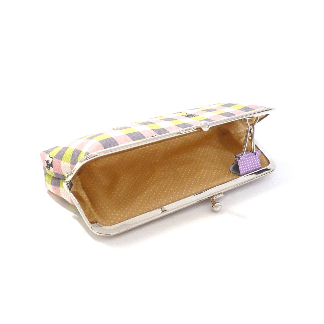 がま口 ペンケース ピンク 猫柄 チェック 眼鏡ケース G507