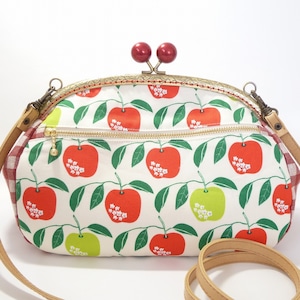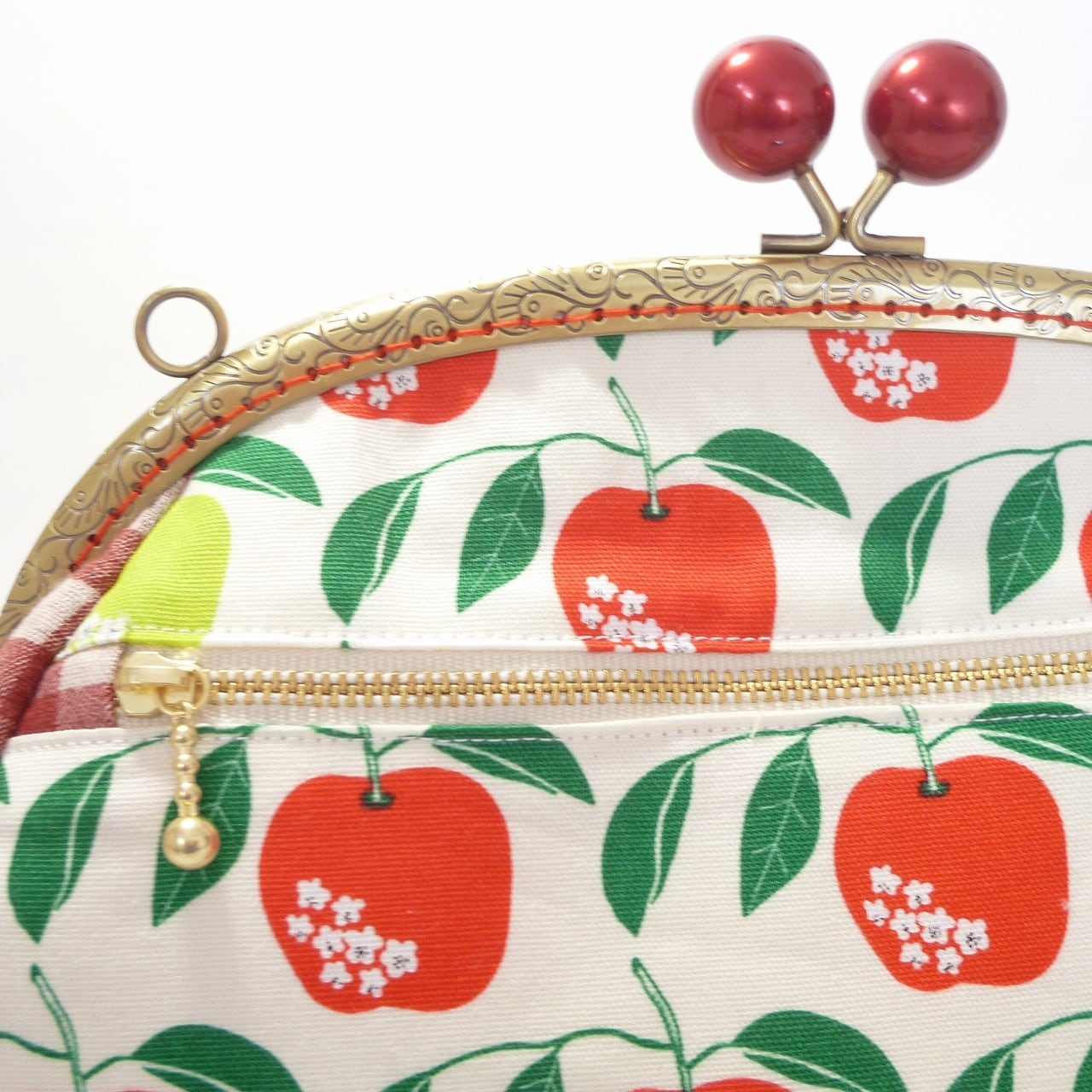 リンゴがたくさん綺麗に並んだかわいいがま口バッグです。