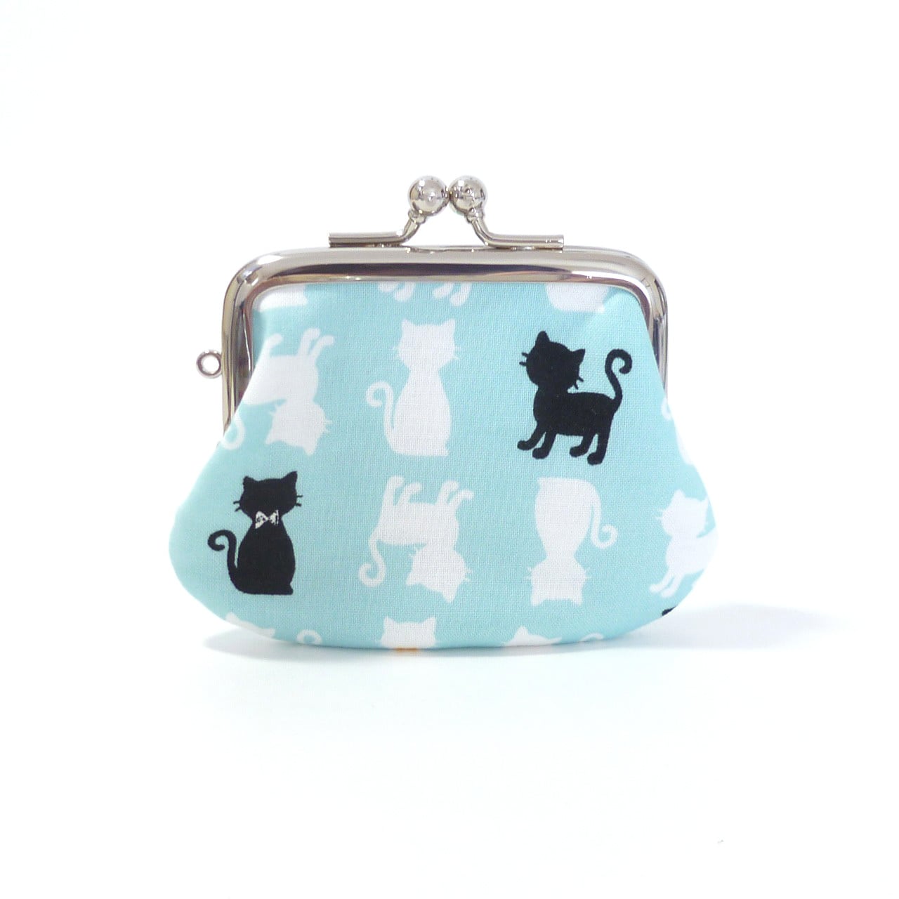がま口小銭入れ 猫のシルエット 水色 財布 猫柄 コインケース G582