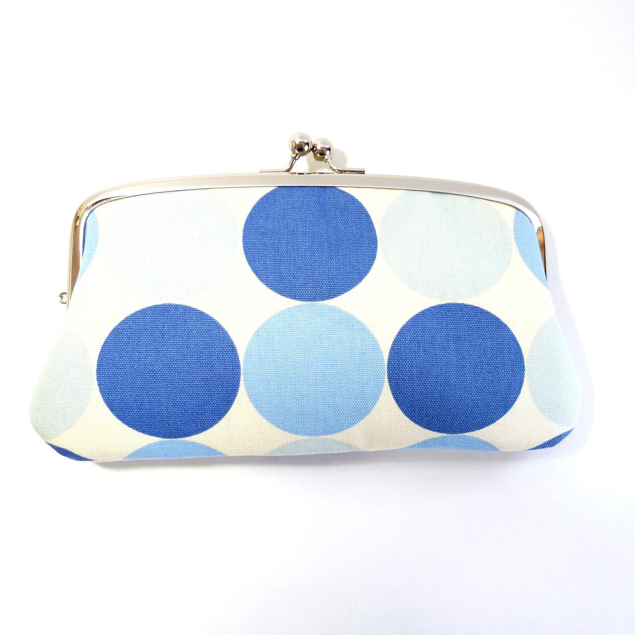 [SALE] 親子がま口 長財布 大きいドット柄 ブルー・青 G094 SALE