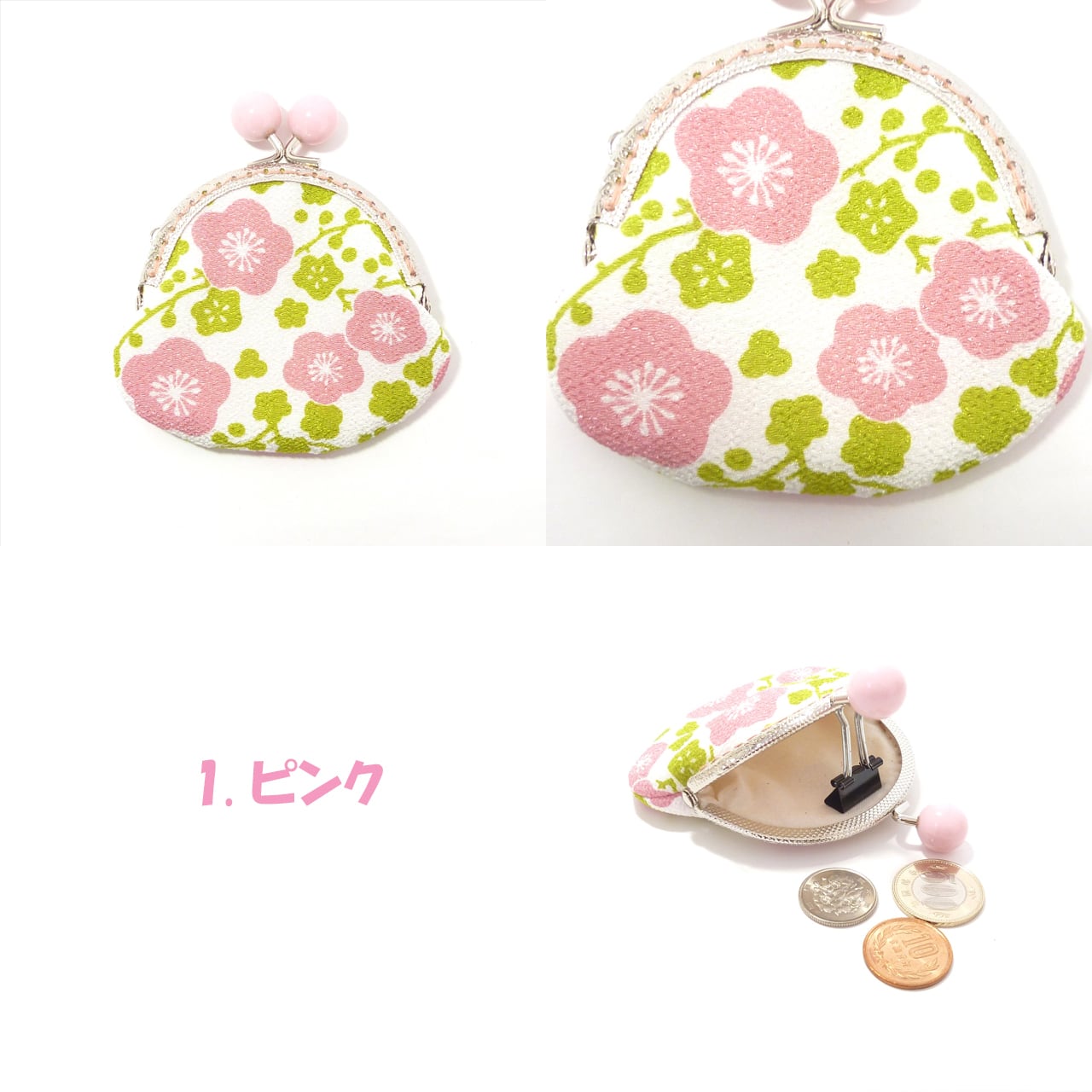 華やかな梅柄のかわいいがま口小銭入れです。口金のあめ玉も色を合わせています♪
