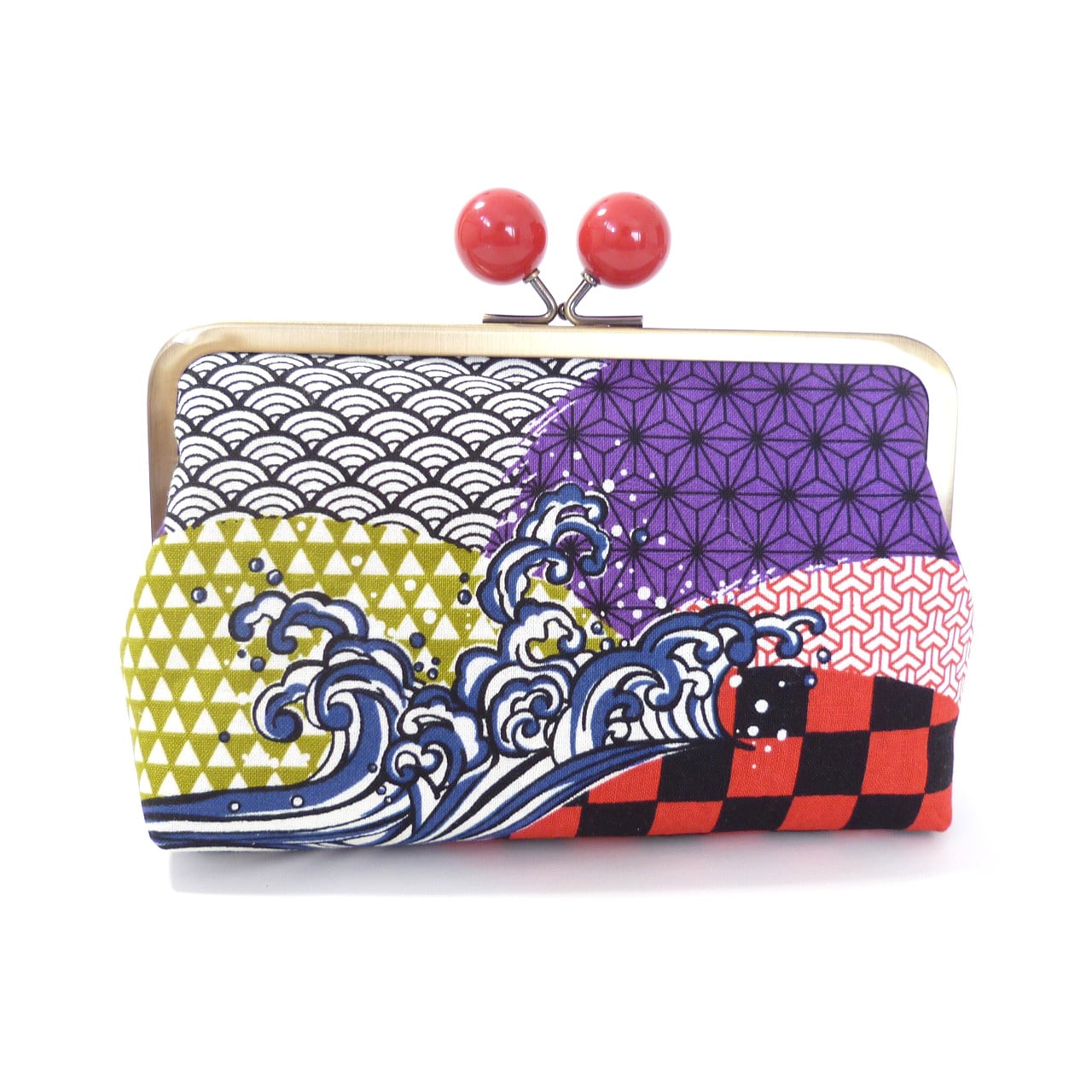 さまざまな和柄に波の絵がおしゃれな和柄のがま口ポーチです。