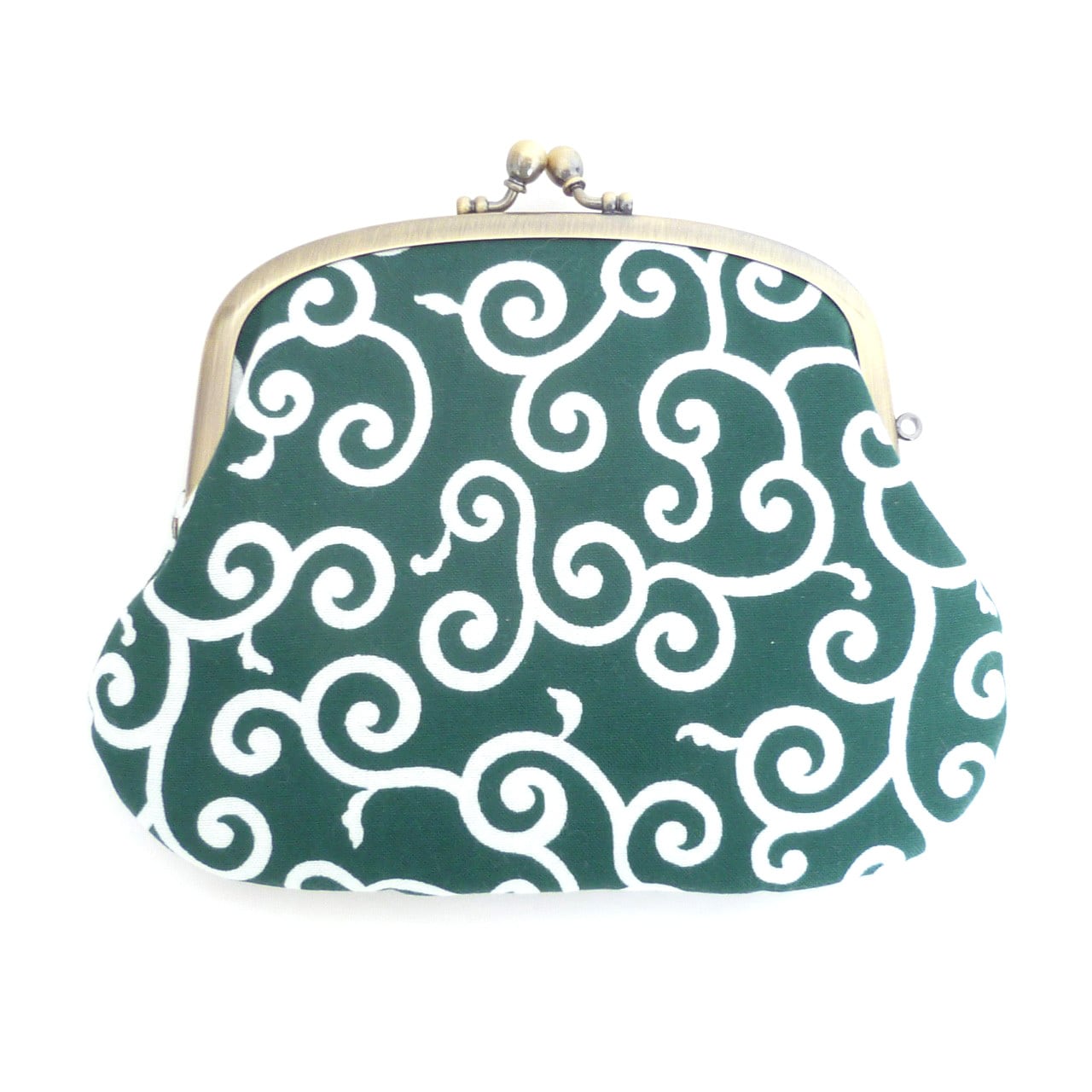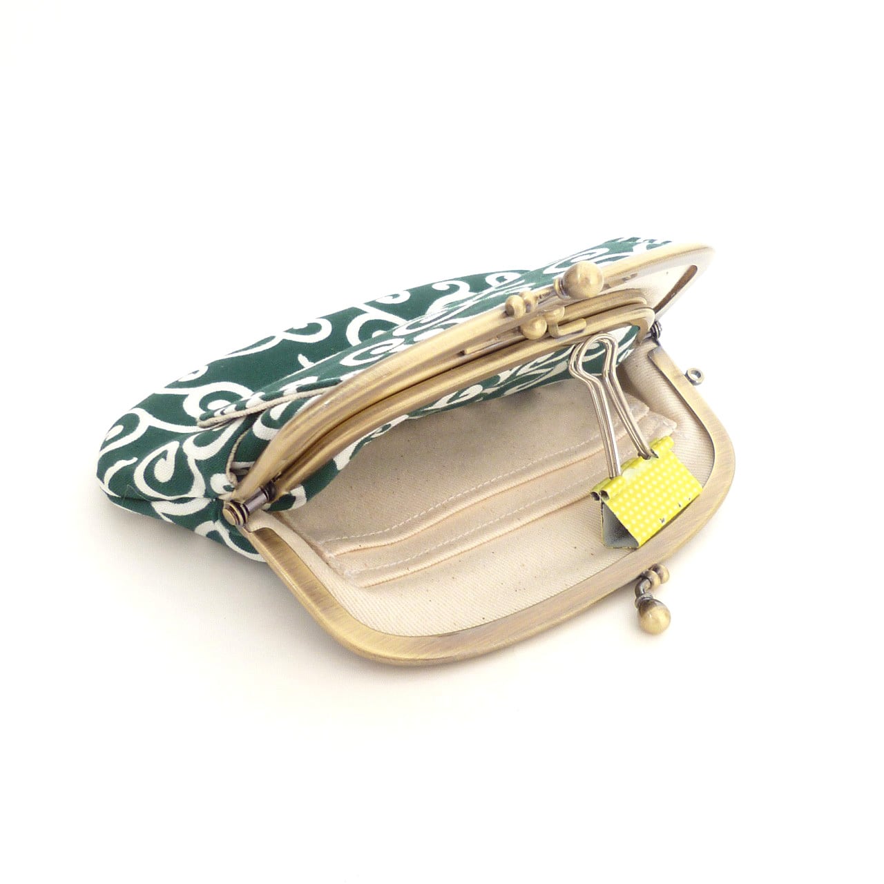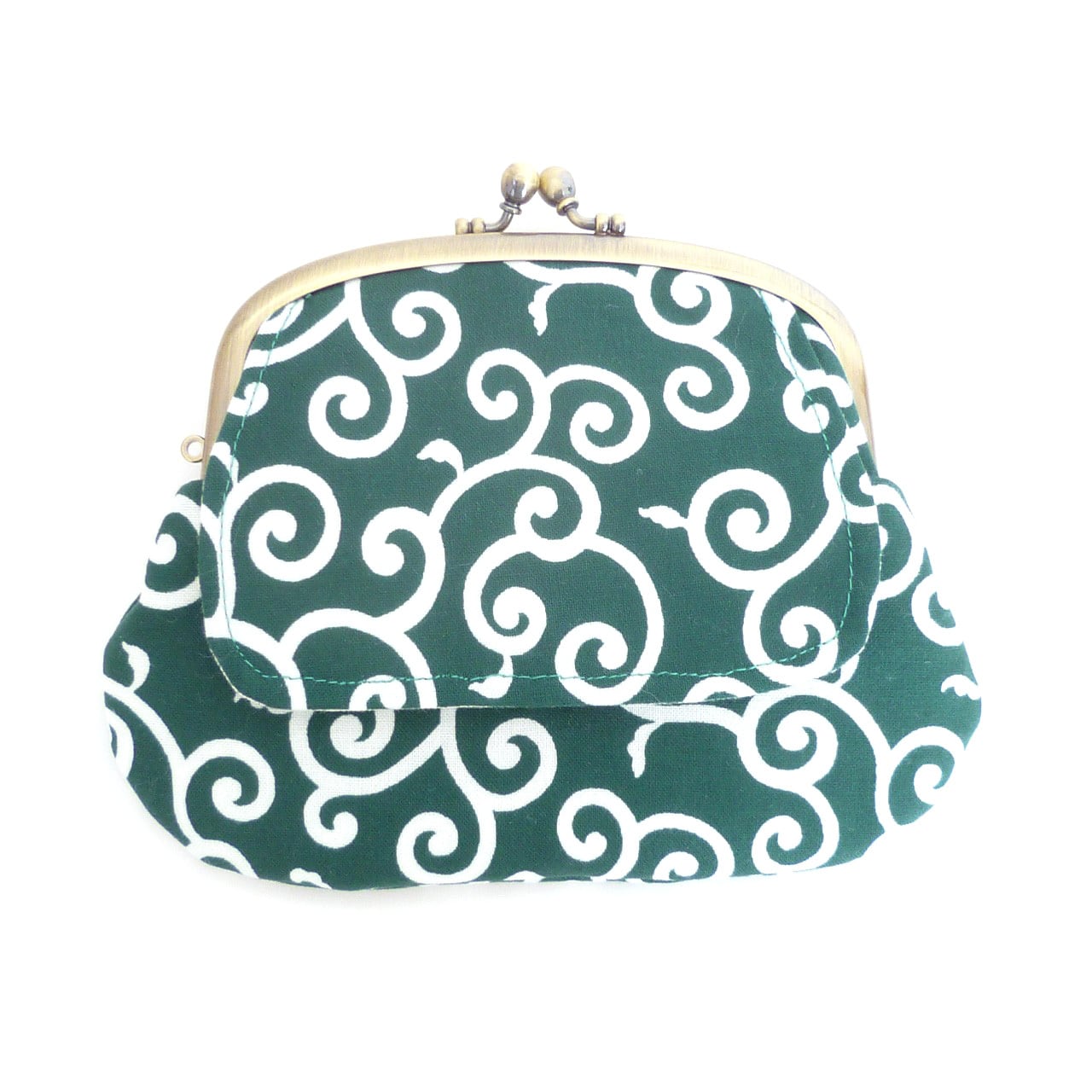ポケット付き 親子がま口 財布 唐草模様 緑 和柄 G593