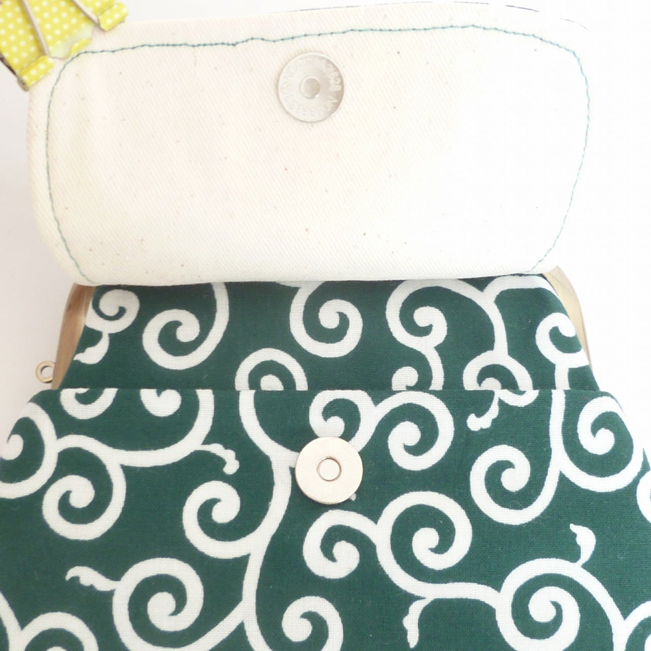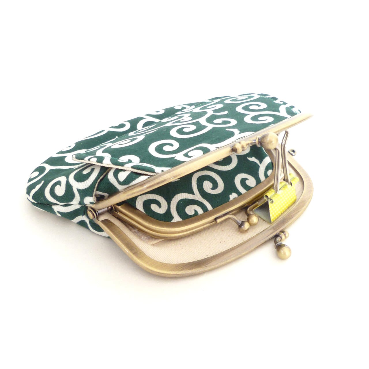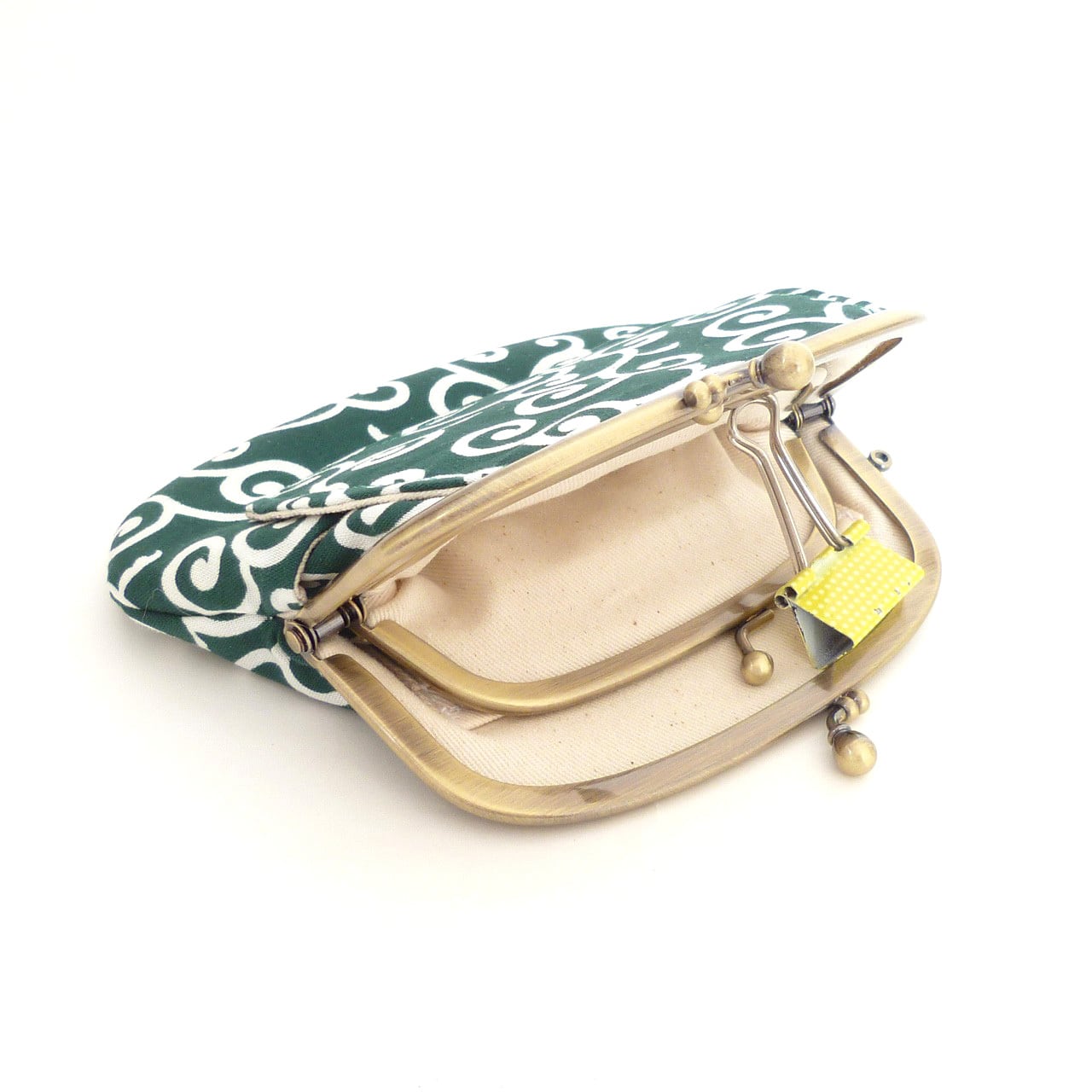 ポケット付き 親子がま口 財布 唐草模様 緑 和柄 G593