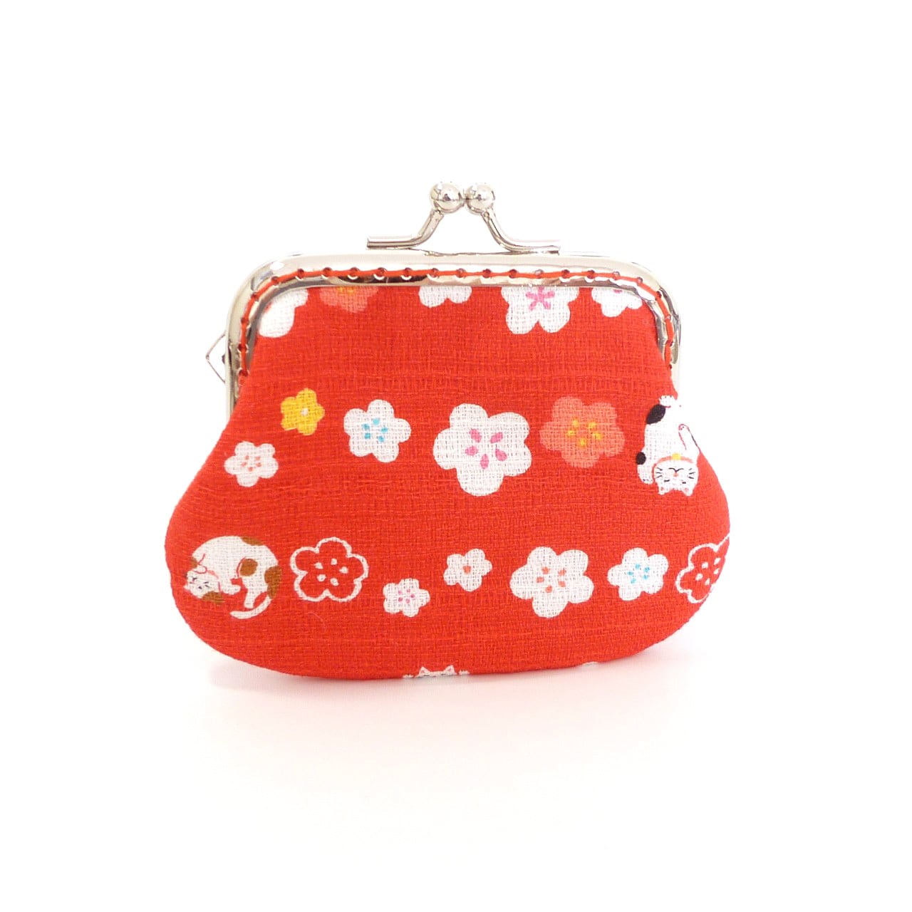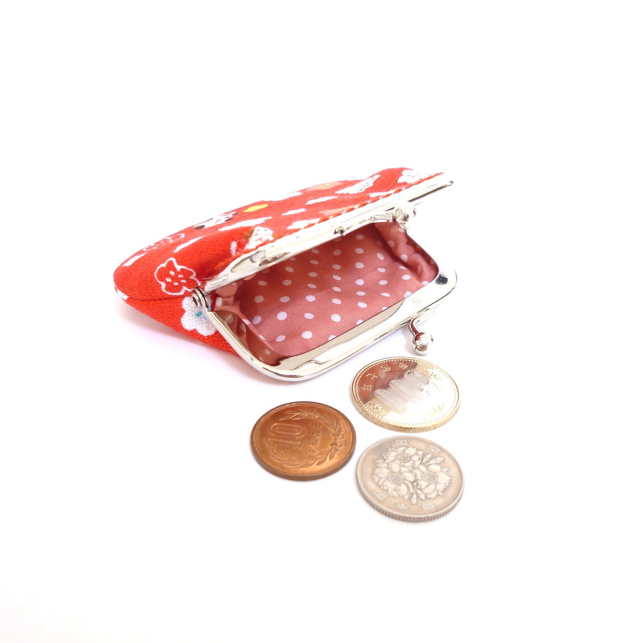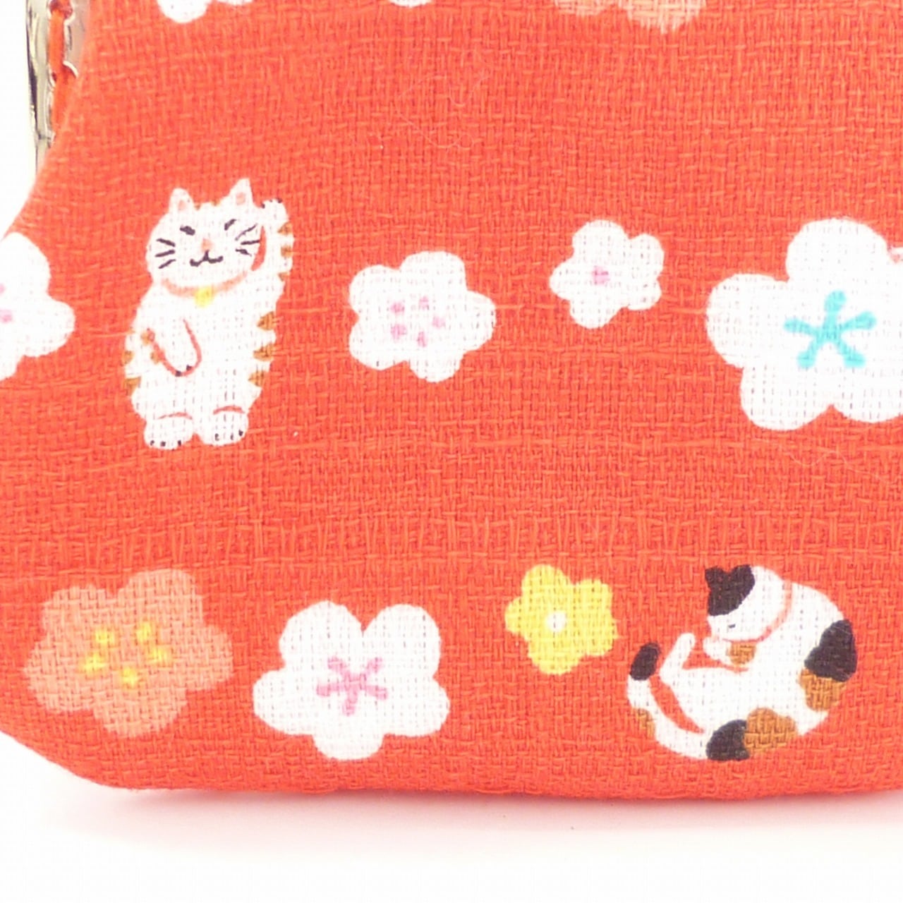 福が来そうな猫と桜の柄のがま口小銭入れです。カバンや、服のポケットにすっと入るサイズなので持ち歩きやすく便利です。