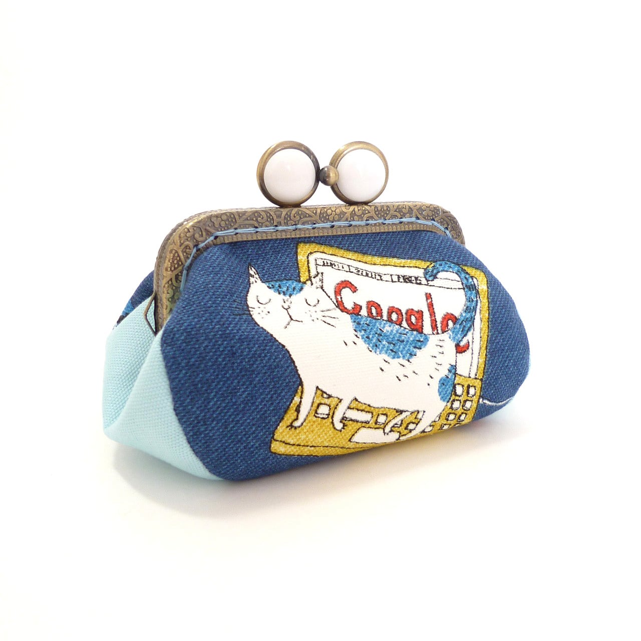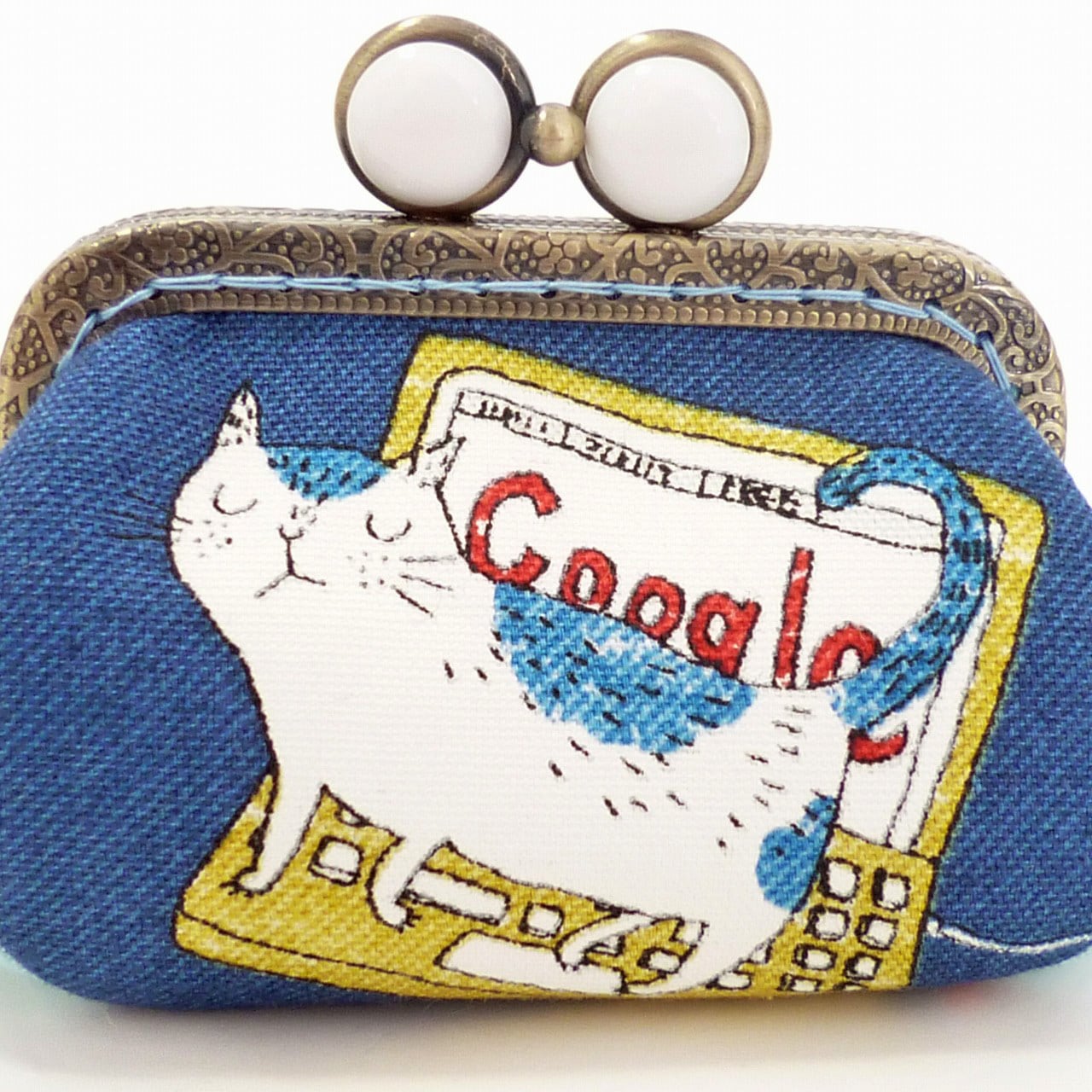 がま口小銭入れ アメリカンな猫たち ネイビー 猫柄 コインケース G661